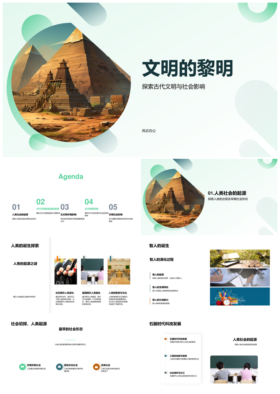 风云办公提供的人类智人诞生与古代文明黎明PPT模板,下载格式为pptx,一共25页,作品中文字及图均可以修改和编辑,图片更改请在作品中右键图片并更换,文字修改请直接点击文字进行修改。