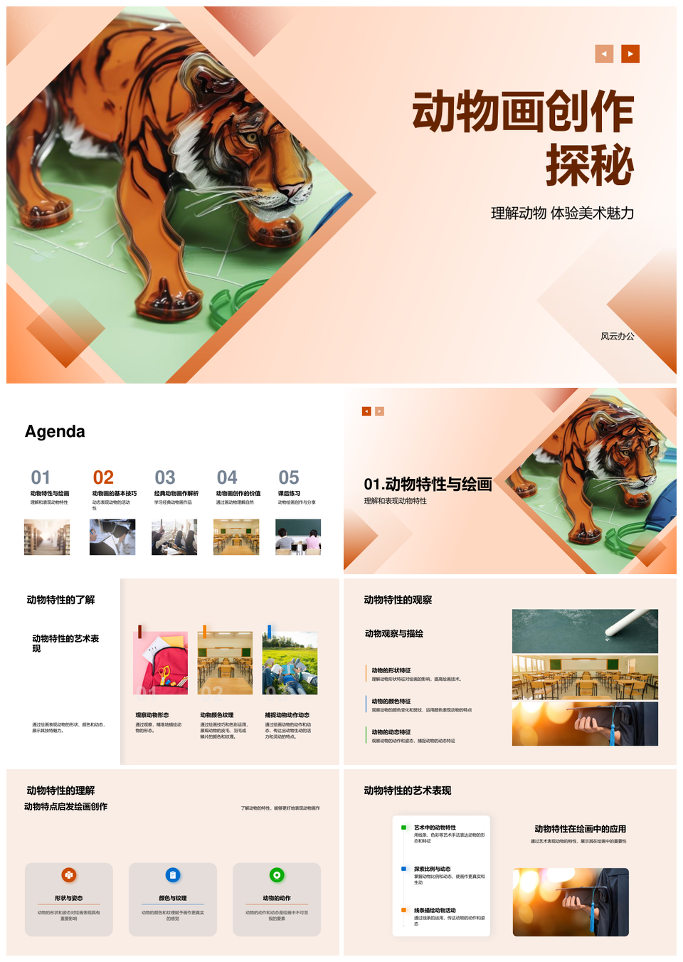 风云办公提供的动物画动态线条艺术表现技法探秘PPT模板,下载格式为pptx,一共28页,作品中文字及图均可以修改和编辑,图片更改请在作品中右键图片并更换,文字修改请直接点击文字进行修改。