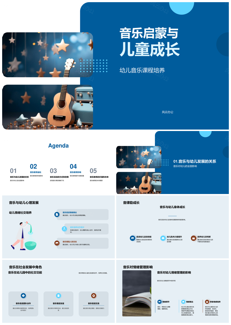 风云办公提供的音乐启蒙幼儿课程乐符师培助成长PPT模板,下载格式为pptx,一共30页,作品中文字及图均可以修改和编辑,图片更改请在作品中右键图片并更换,文字修改请直接点击文字进行修改。