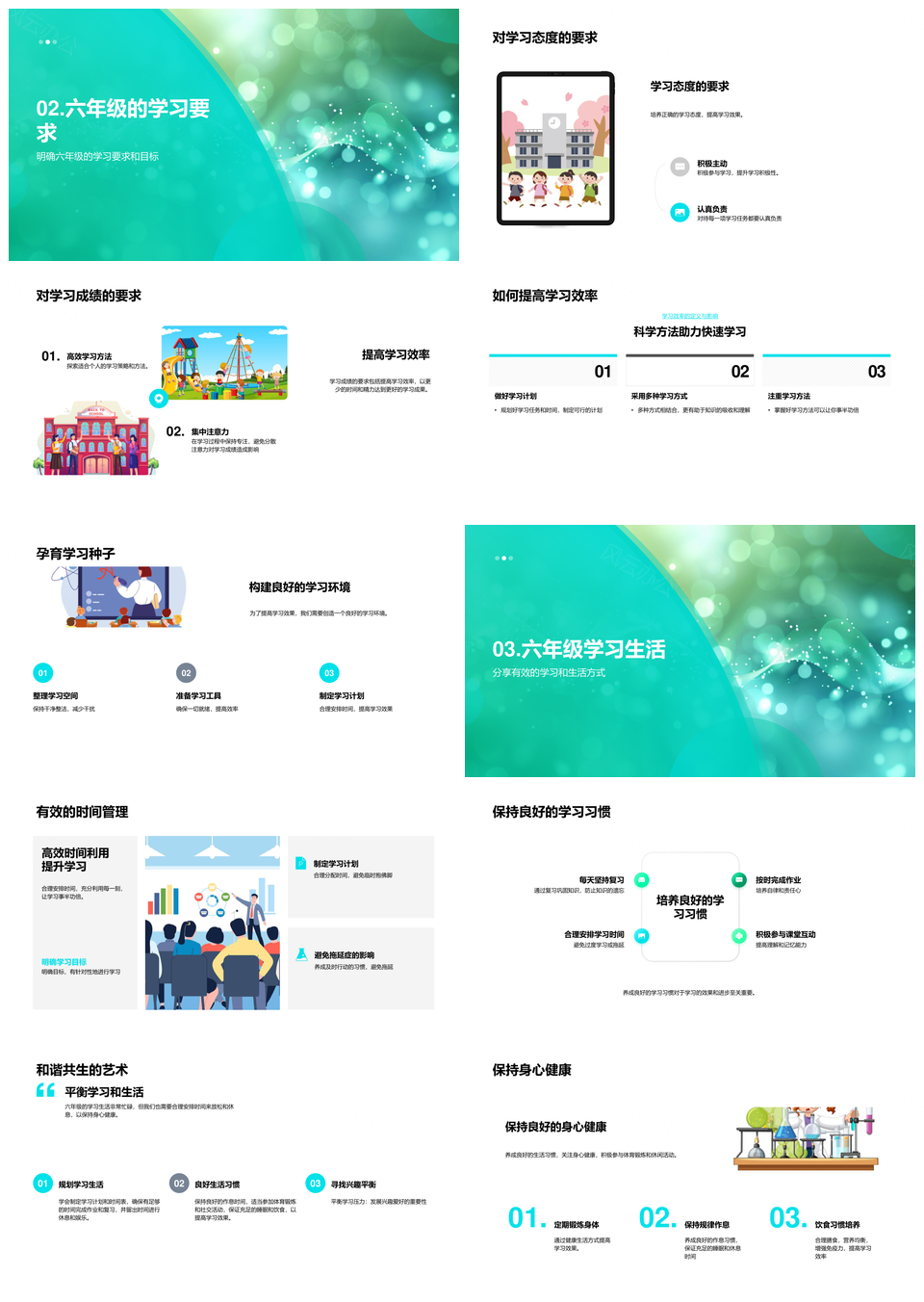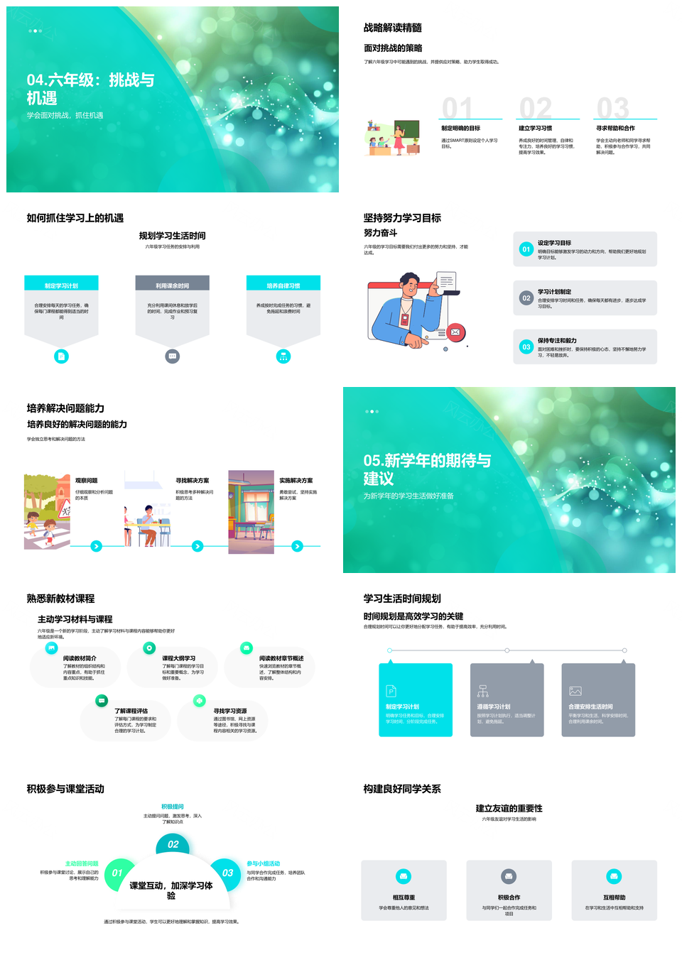 2025六年级核心课程高效学习时间习惯目标挑战机遇PPT模板推荐
