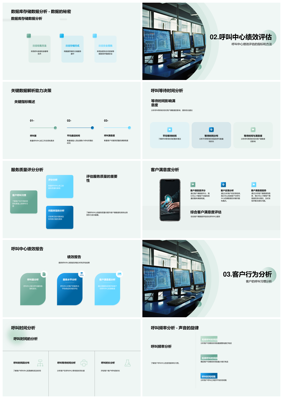 呼叫中心数据收集存储分析洞察关键指标绩效评估客户行为PPT模板推荐