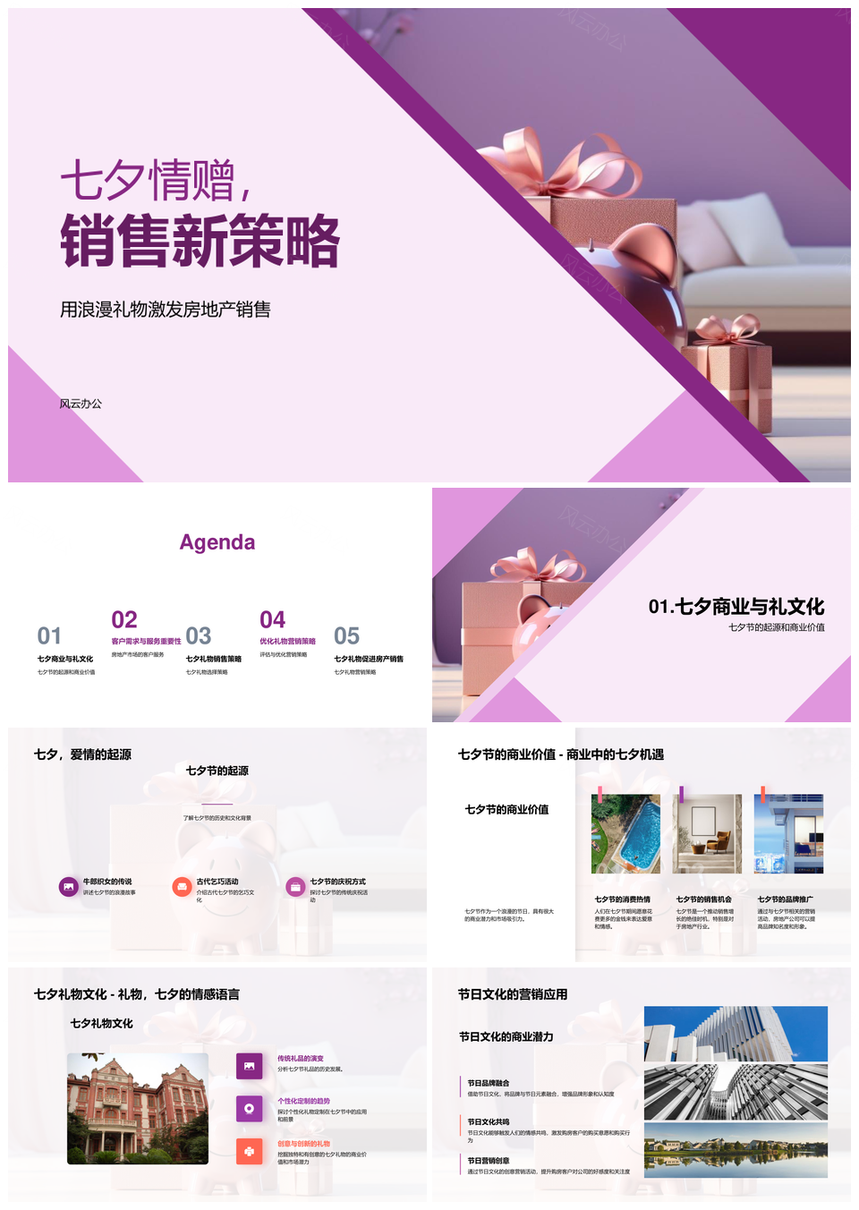 风云办公提供的七夕房地产浪漫礼赠销售新策略PPT模板,下载格式为pptx,一共29页,作品中文字及图均可以修改和编辑,图片更改请在作品中右键图片并更换,文字修改请直接点击文字进行修改。