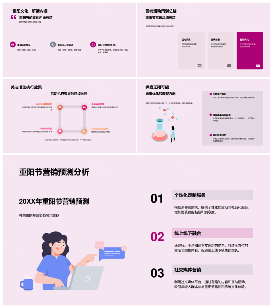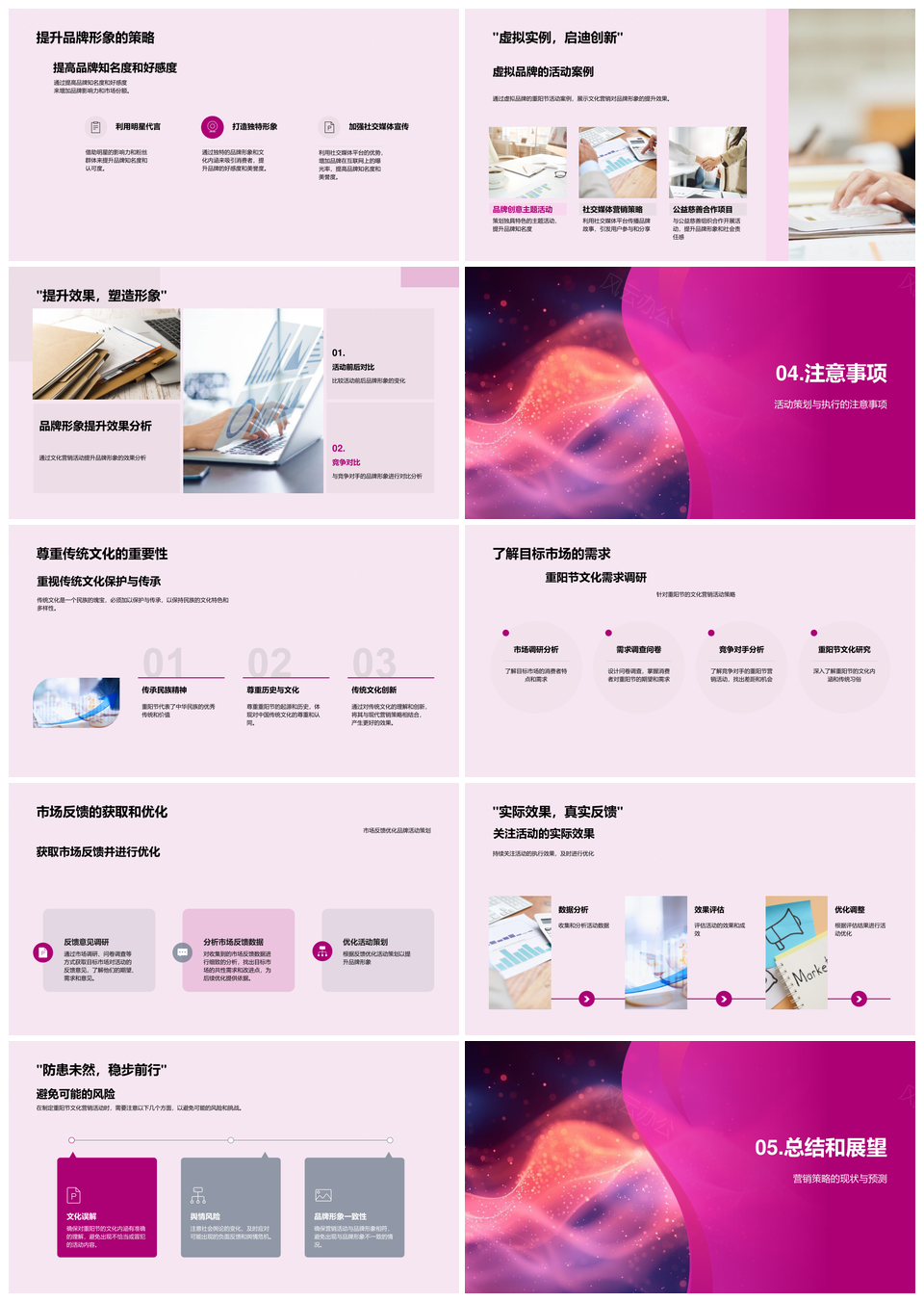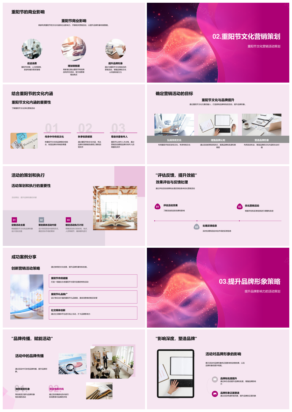 这是一张重阳品牌营销策划文化社会商业影响提升方案PPT模板,包含重阳、品牌、营销、策划、文化、社会、商业、影响、提升、方案等主题内容,也可用作重阳品牌营销策划、品牌营销策划文化、营销策划文化社会、策划文化社会商业、文化社会商业影响、社会商业影响提升、商业影响提升方案、品牌营销策划、营销策划文化、策划文化社会、文化社会商业、社会商业影响、商业影响提升、影响提升方案、重阳品牌营销等PPT场景使用。 风云办公提供的重阳品牌营销策划文化社会商业影响提升方案PPT模板,下载格式为pptx,一共33页,作品中文字及图均可以修改和编辑,图片更改请在作品中右键图片并更换,文字修改请直接点击文字进行修改。