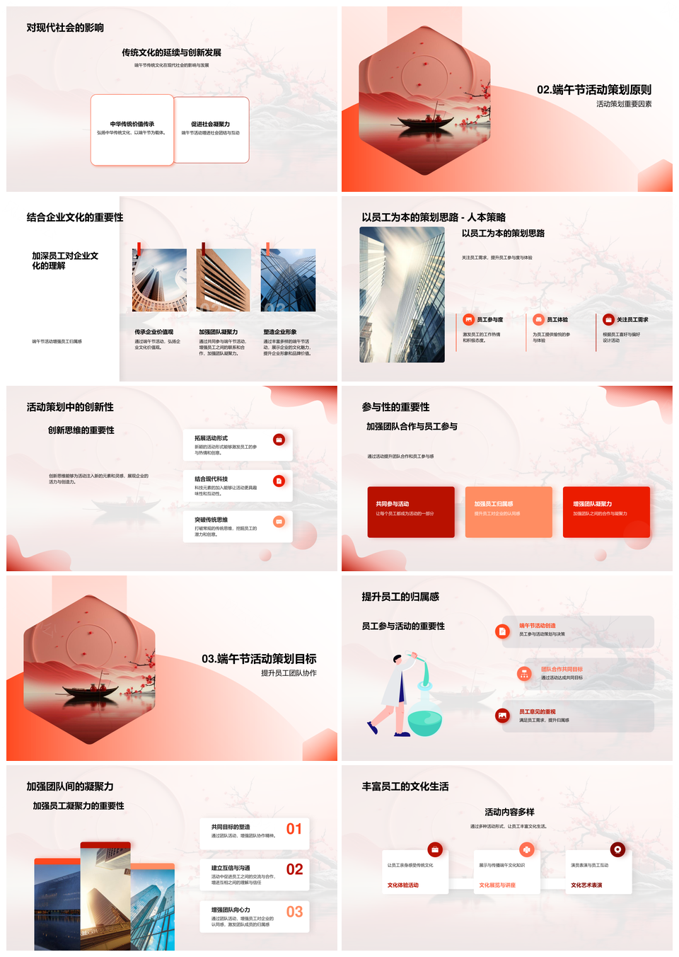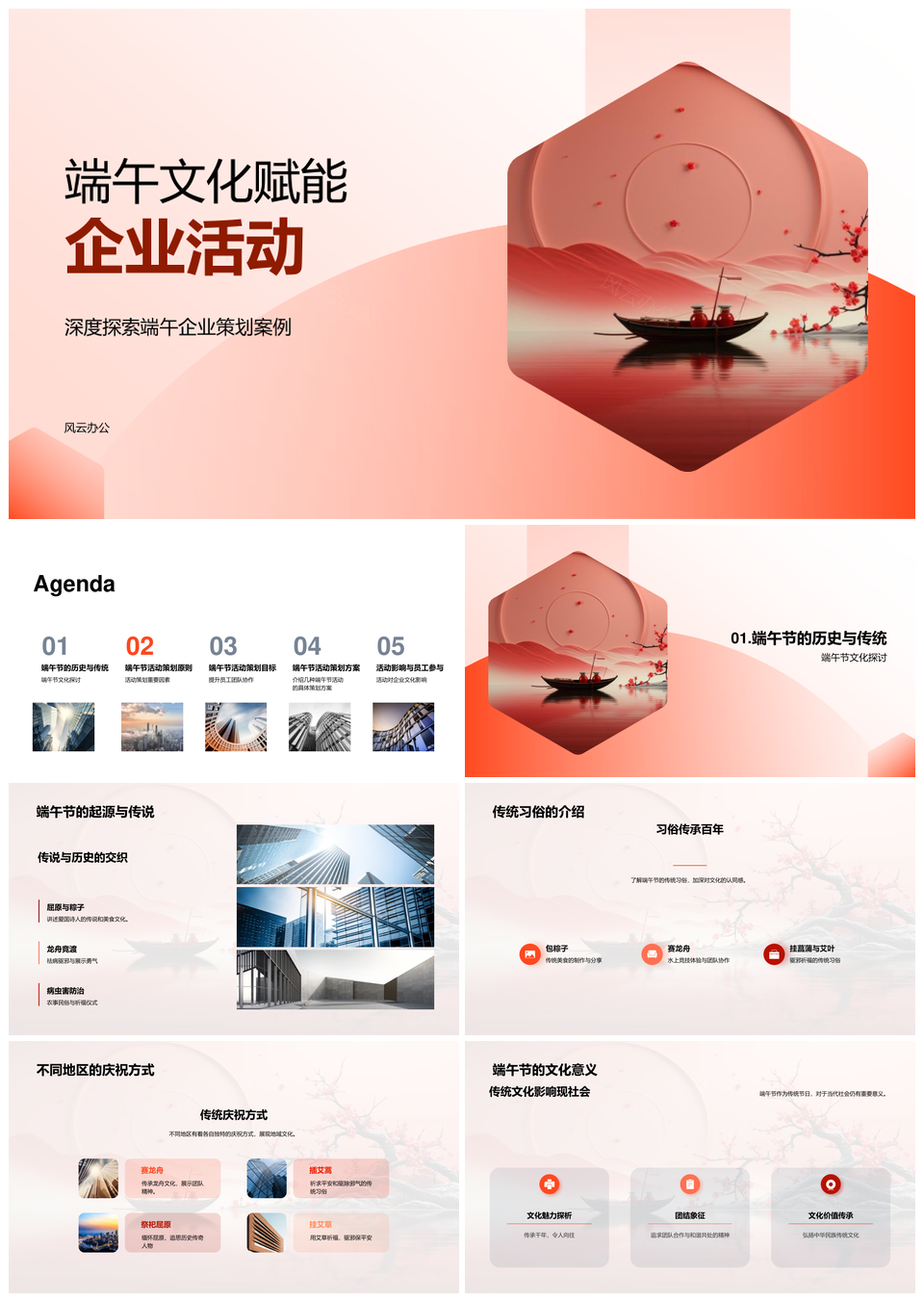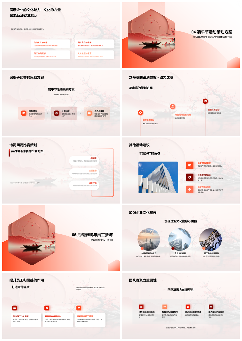 端午节粽龙舟诗赛凝归属强文化企业活动策划PPT模板推荐