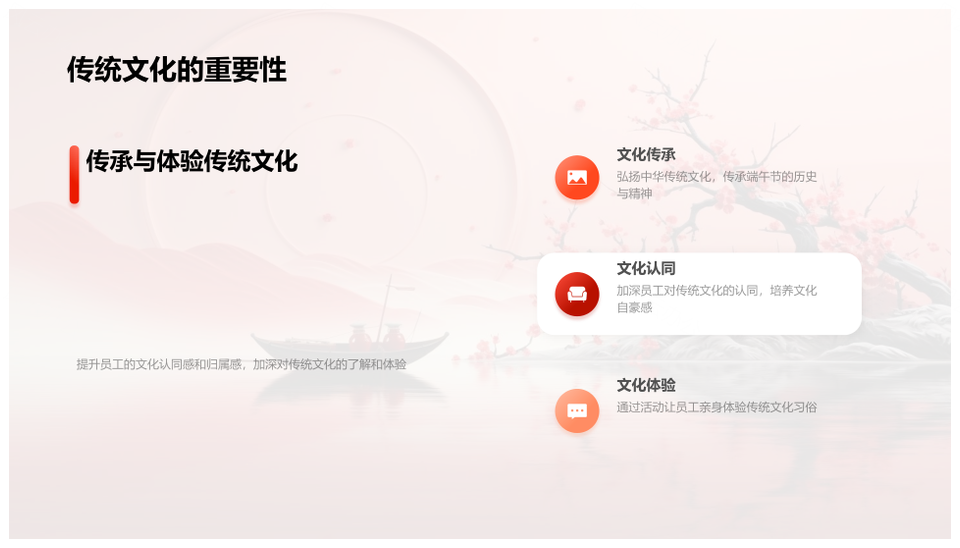 这是一张端午节粽龙舟诗赛凝归属强文化企业活动策划PPT模板,包含端午节、粽、龙舟、诗赛、凝、归属、强文化企业、活动策划等主题内容,也可用作端午节龙舟诗赛活动策划、端午节龙舟文化企业、龙舟诗赛文化企业活动、端午节诗赛文化活动策划、龙舟诗赛归属文化活动、端午节归属文化活动策划、诗赛归属企业活动策划、端午节龙舟诗赛文化、端午节龙舟文化活动、龙舟文化企业活动策划、诗赛文化企业活动、归属文化企业活动、端午节企业活动策划、龙舟文化活动策划、文化企业活动策划等PPT场景使用。 风云办公提供的端午节粽龙舟诗赛凝归属强文化企业活动策划PPT模板,下载格式为pptx,一共29页,作品中文字及图均可以修改和编辑,图片更改请在作品中右键图片并更换,文字修改请直接点击文字进行修改。