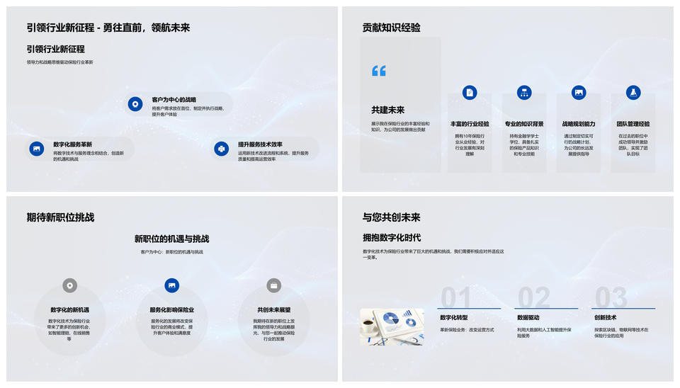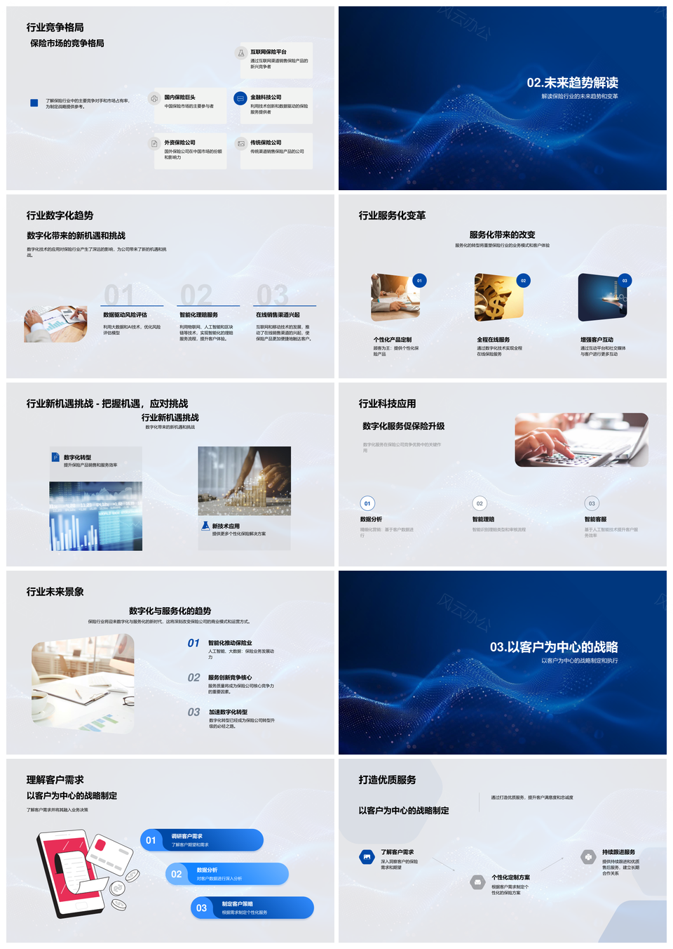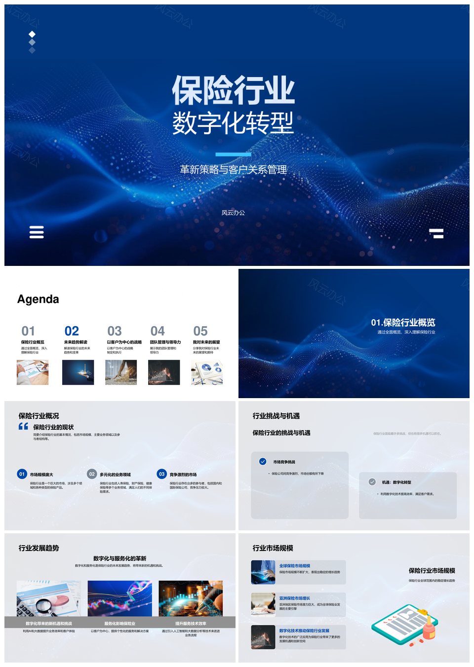 风云办公提供的保险业数字化转型客户体验革新策略PPT模板,下载格式为pptx,一共32页,作品中文字及图均可以修改和编辑,图片更改请在作品中右键图片并更换,文字修改请直接点击文字进行修改。