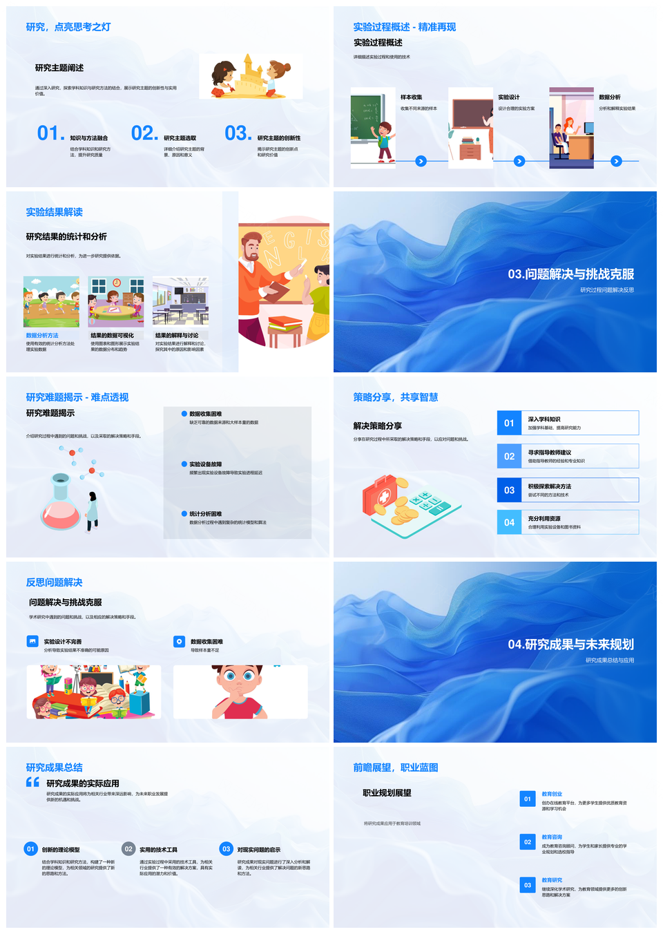 毕业答辩技巧流程学科研究实验问题挑战成果PPT模板推荐