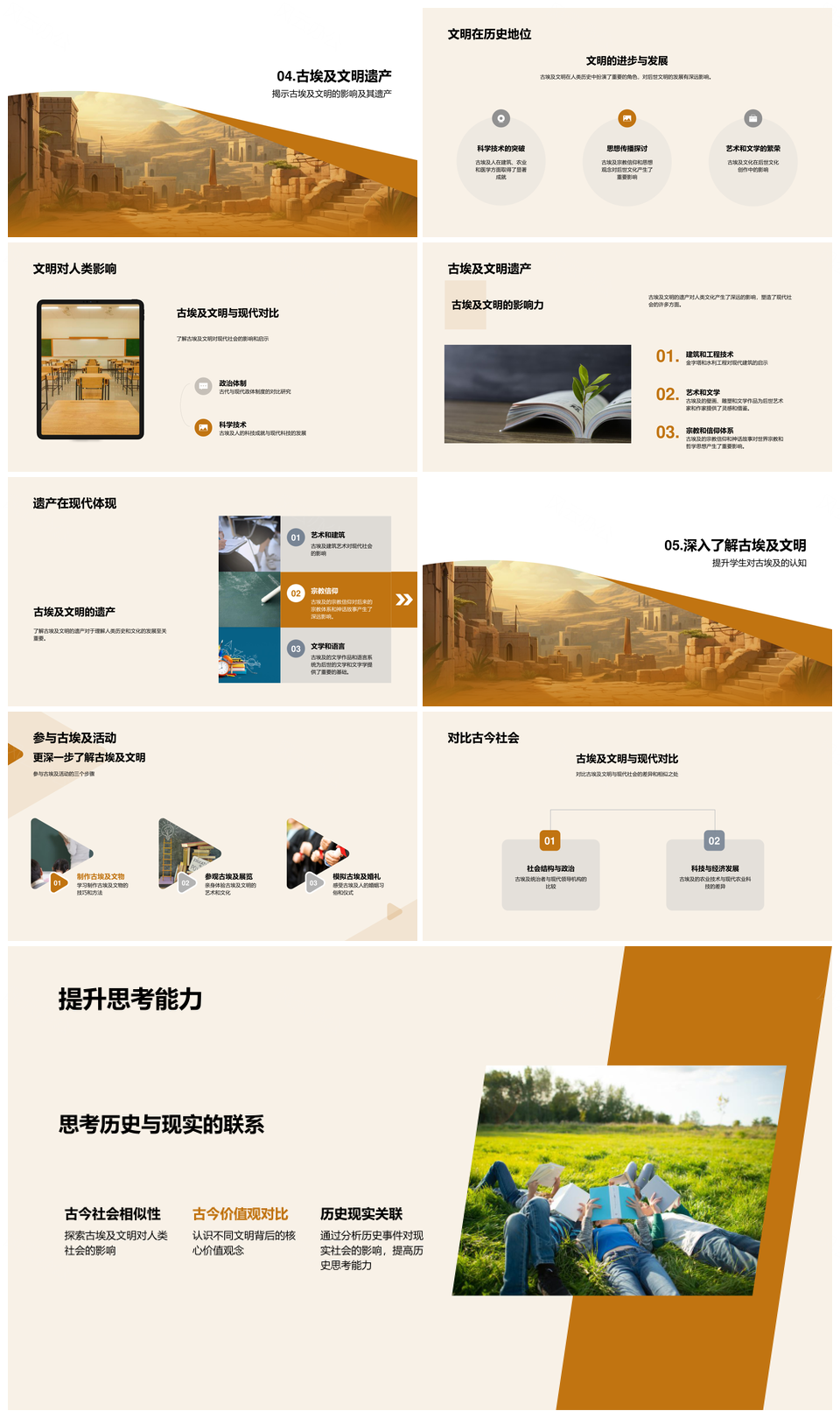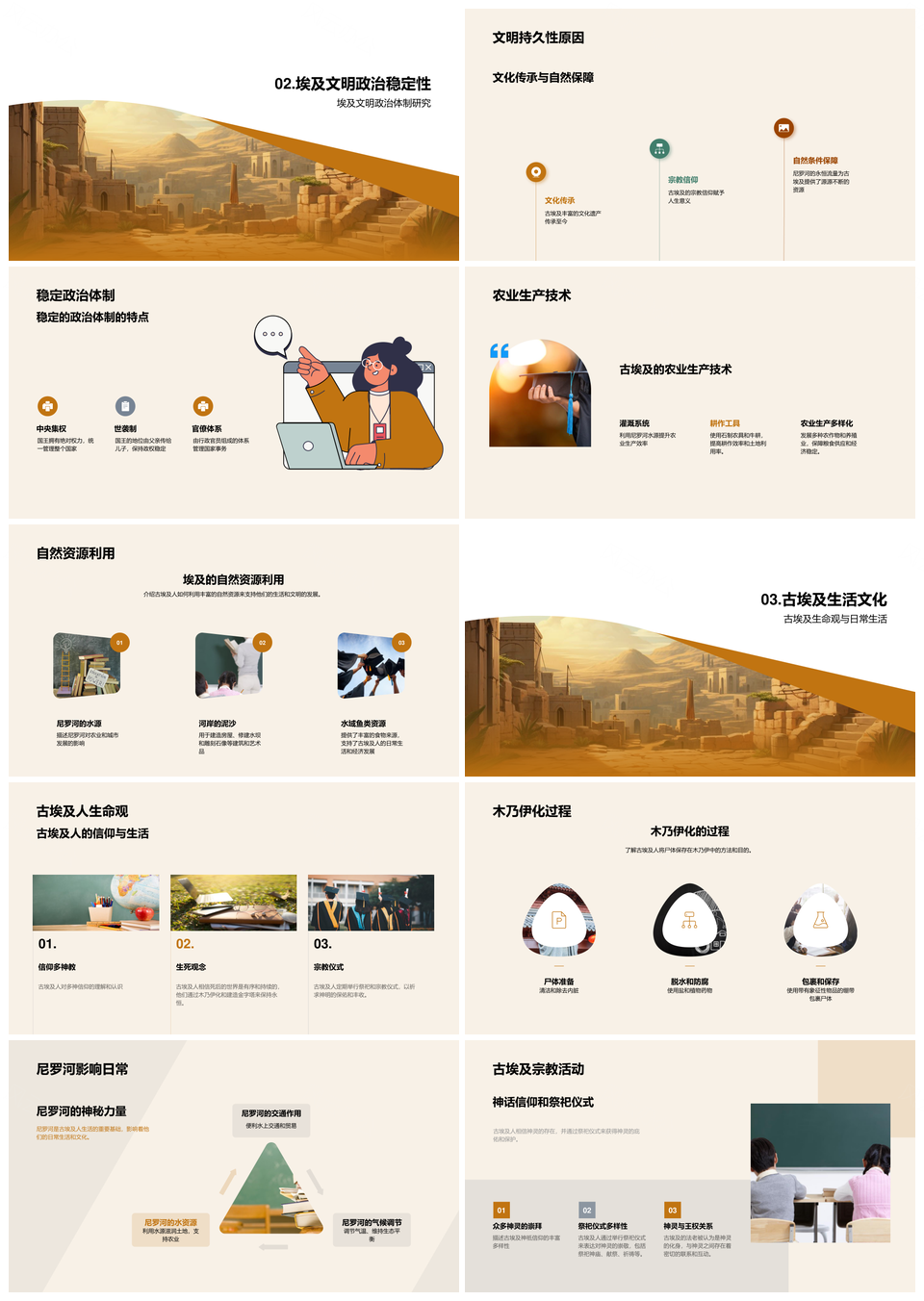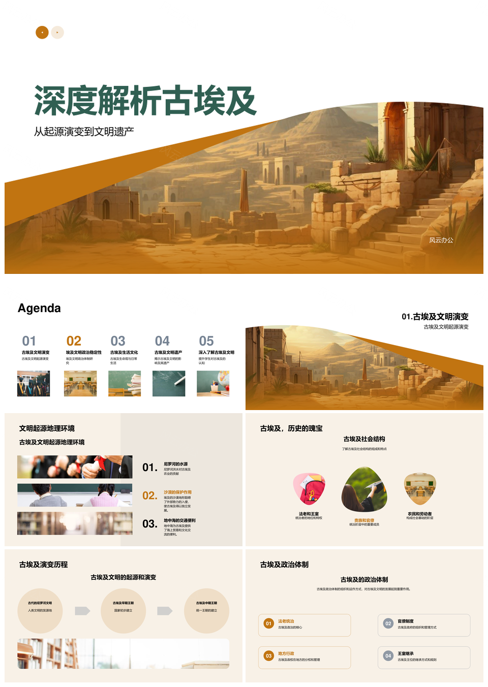 这是一张古埃及文明起源演变与社会政治农业金字塔PPT模板,包含古埃及、文明、起源、演变、社会、政治、农业、金字塔等主题内容,也可用作古埃及文明起源演变、古埃及社会政治农业、文明起源演变社会政治、社会政治农业金字塔、文明起源演变、古埃及社会政治、社会政治农业、政治农业金字塔、古埃及农业金字塔、起源演变社会政治、古埃及文明、社会政治、农业金字塔、文明起源、古埃及社会等PPT场景使用。 风云办公提供的古埃及文明起源演变与社会政治农业金字塔PPT模板,下载格式为pptx,一共27页,作品中文字及图均可以修改和编辑,图片更改请在作品中右键图片并更换,文字修改请直接点击文字进行修改。