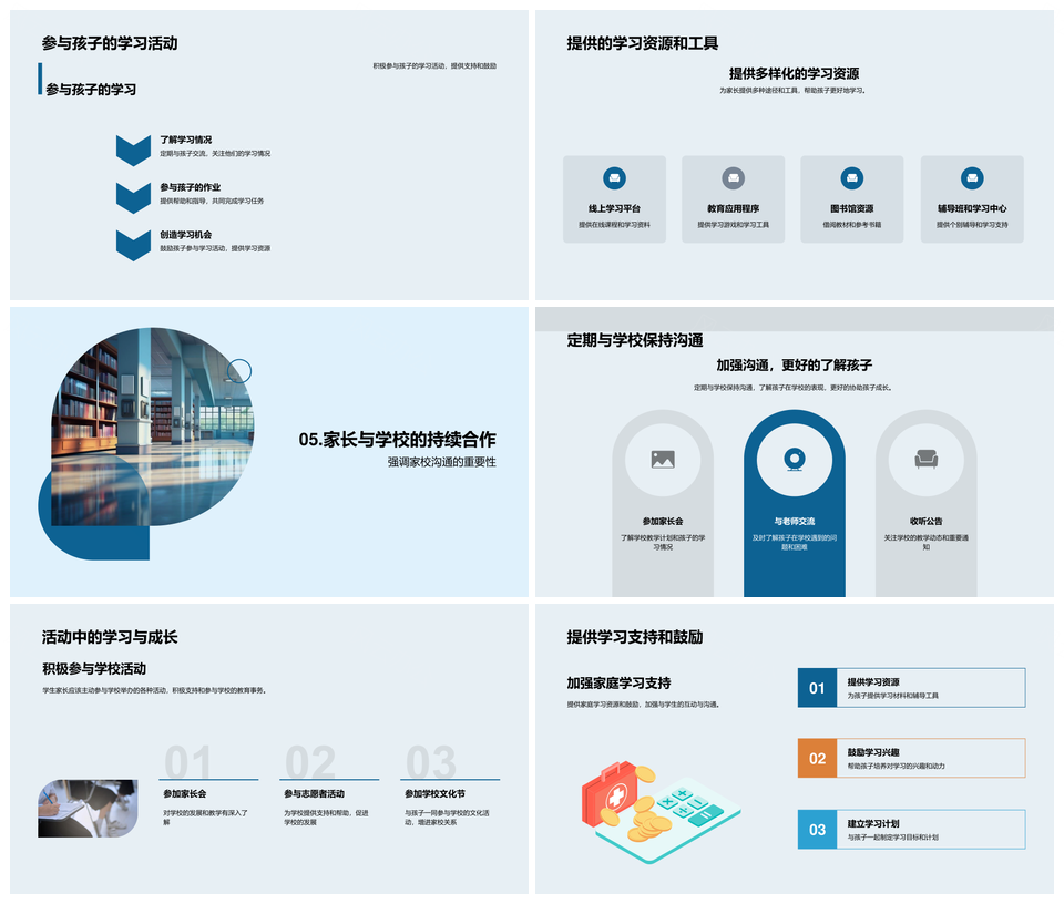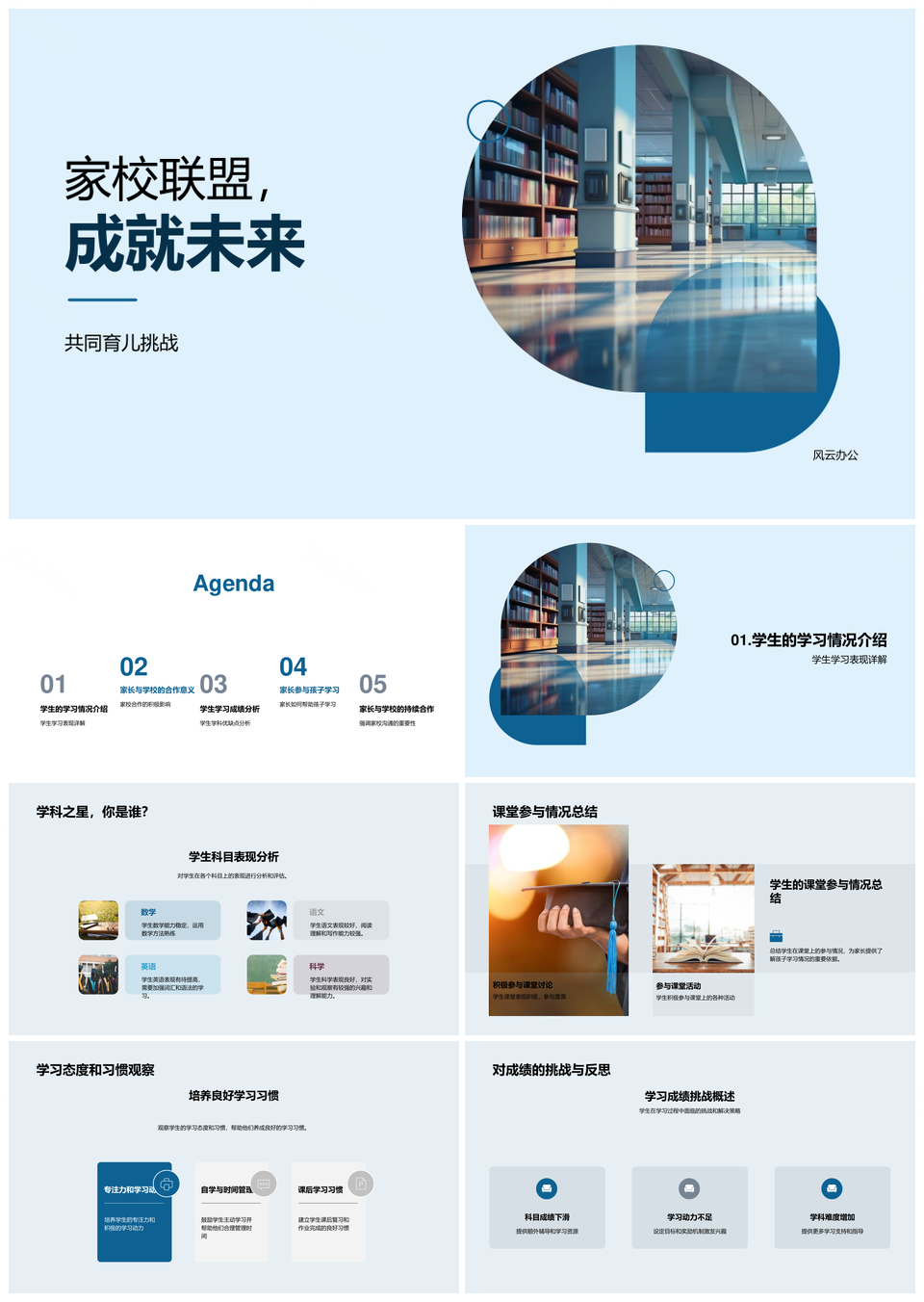 风云办公提供的家校联盟助力学生学业成长PPT模板,下载格式为pptx,一共24页,作品中文字及图均可以修改和编辑,图片更改请在作品中右键图片并更换,文字修改请直接点击文字进行修改。