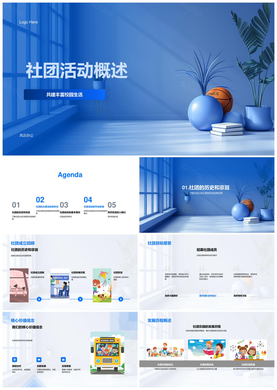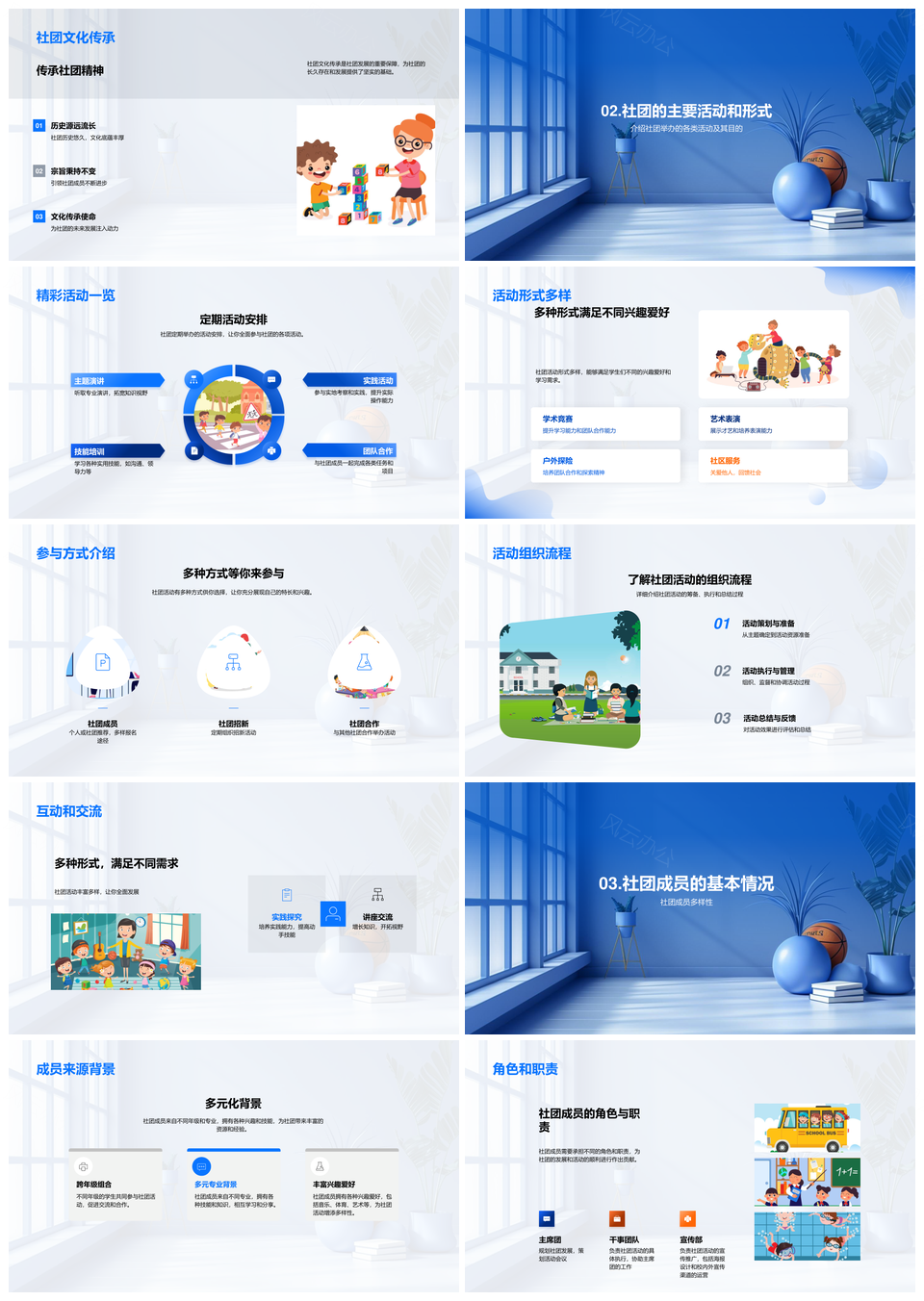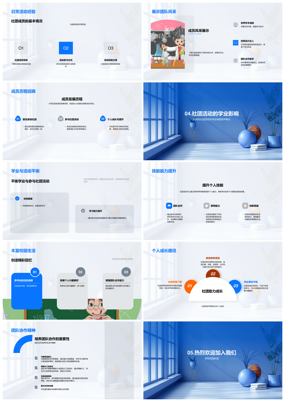 校园社团历程愿景价值观流程职责学业平衡PPT模板推荐
