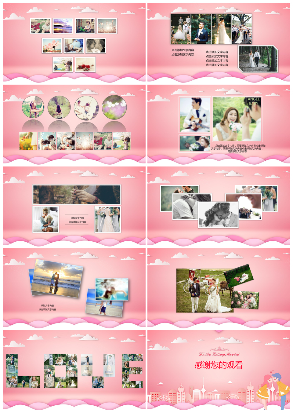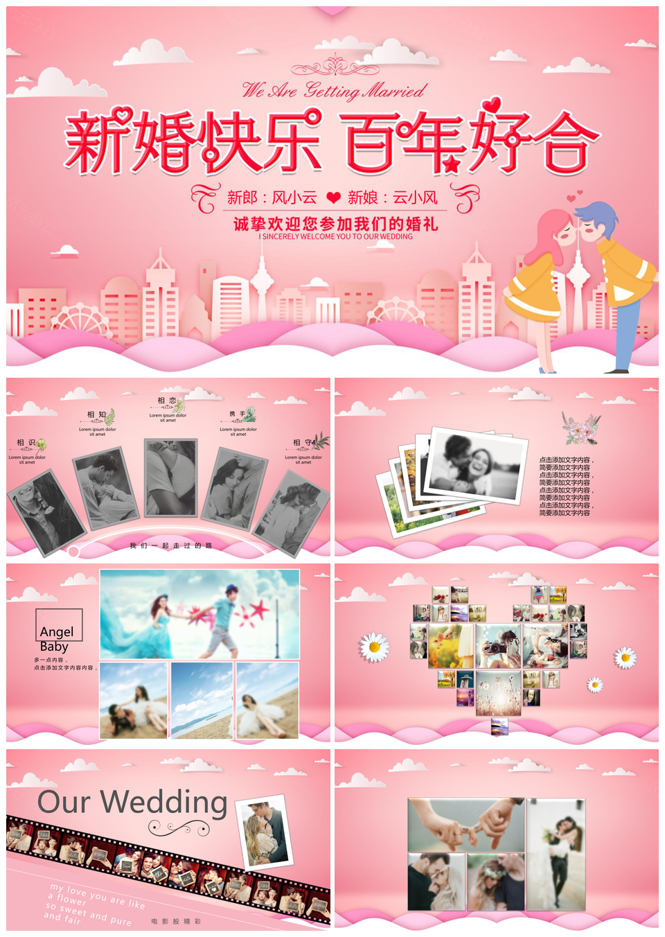 这是一张粉色清新浪漫爱情婚宴相册PPT模板,包含粉色、清新、浪漫、爱情、婚宴、相册等主题内容,也可用作提取的词:粉色、清新、浪漫、爱情、婚宴、相册