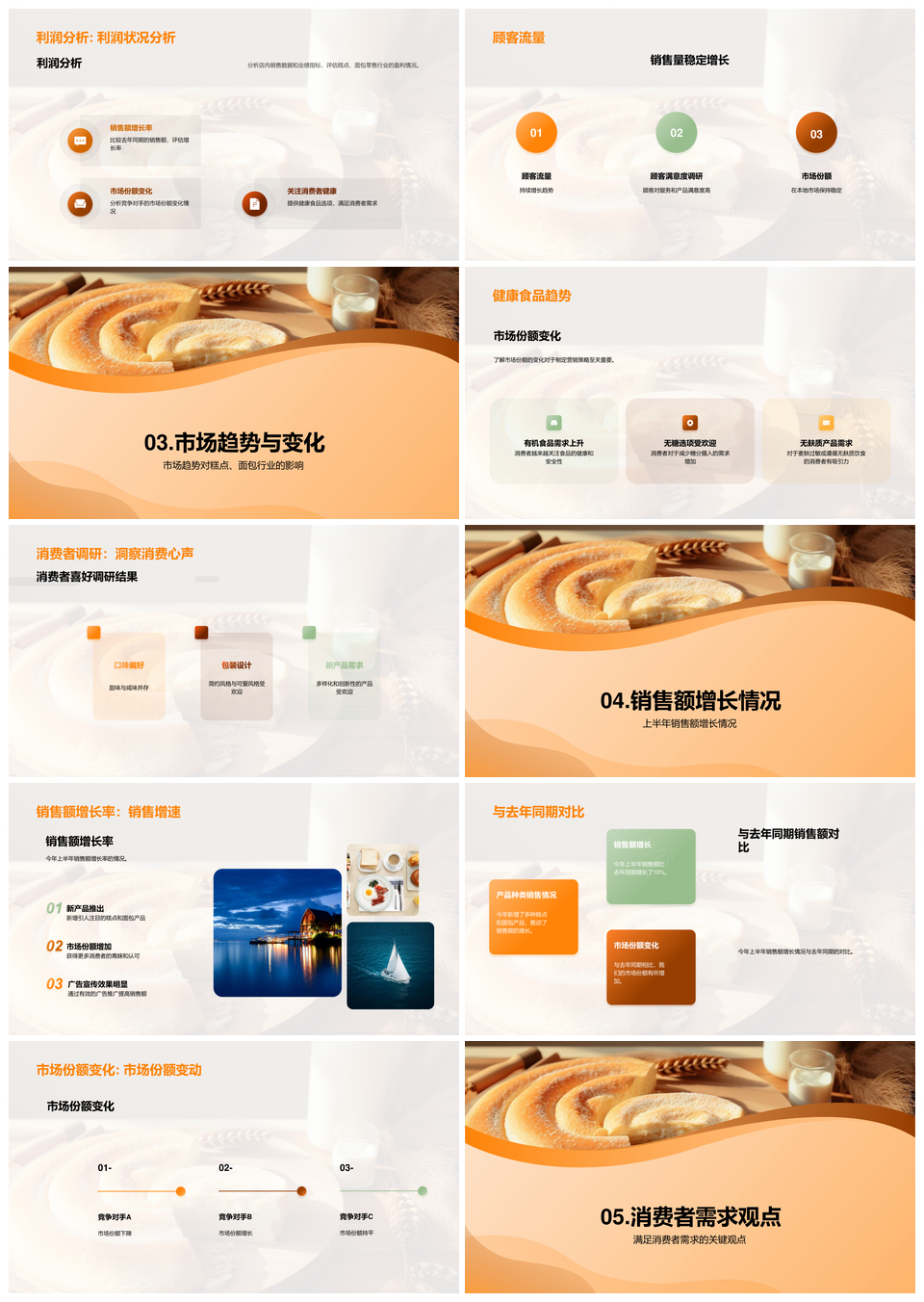 这是一张面包糕点零售行业经理年中总结竞品销售利润PPT模板,包含面包糕点、零售行业、经理、年中总结、竞品、销售、利润等主题内容,也可用作面包糕点零售行业、糕点零售行业经理、零售行业经理年中、行业经理年中总结、经理年中总结竞品、年中总结竞品销售、总结竞品销售利润、面包糕点零售、糕点零售行业、零售行业经理、行业经理年中、经理年中总结、年中总结竞品、总结竞品销售、竞品销售利润等PPT场景使用。 风云办公提供的面包糕点零售行业经理年中总结竞品销售利润PPT模板,下载格式为pptx,一共22页,作品中文字及图均可以修改和编辑,图片更改请在作品中右键图片并更换,文字修改请直接点击文字进行修改。