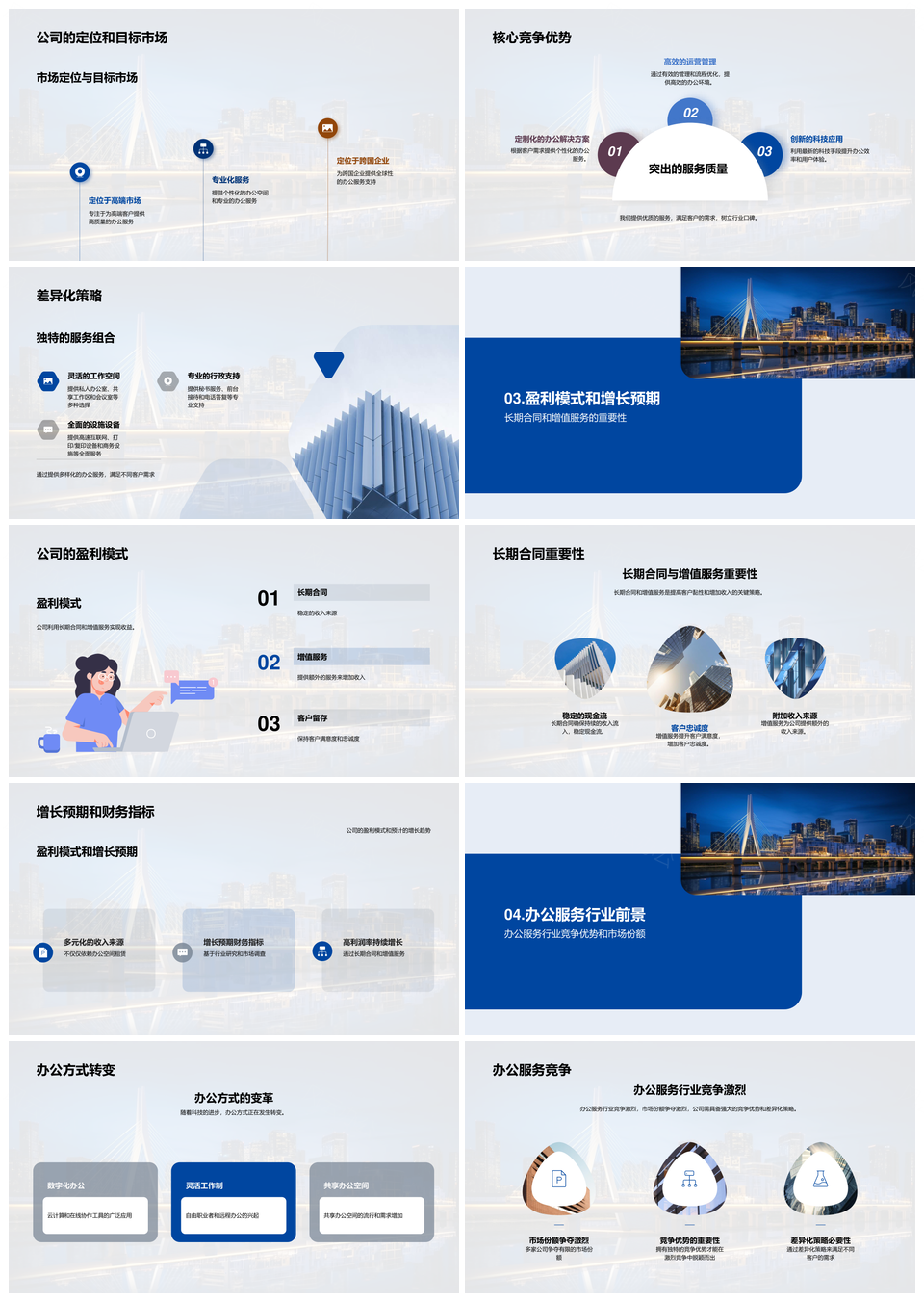 风云办公提供的办公服务行业未来市场优势与潜力前景PPT模板,下载格式为pptx,一共23页,作品中文字及图均可以修改和编辑,图片更改请在作品中右键图片并更换,文字修改请直接点击文字进行修改。