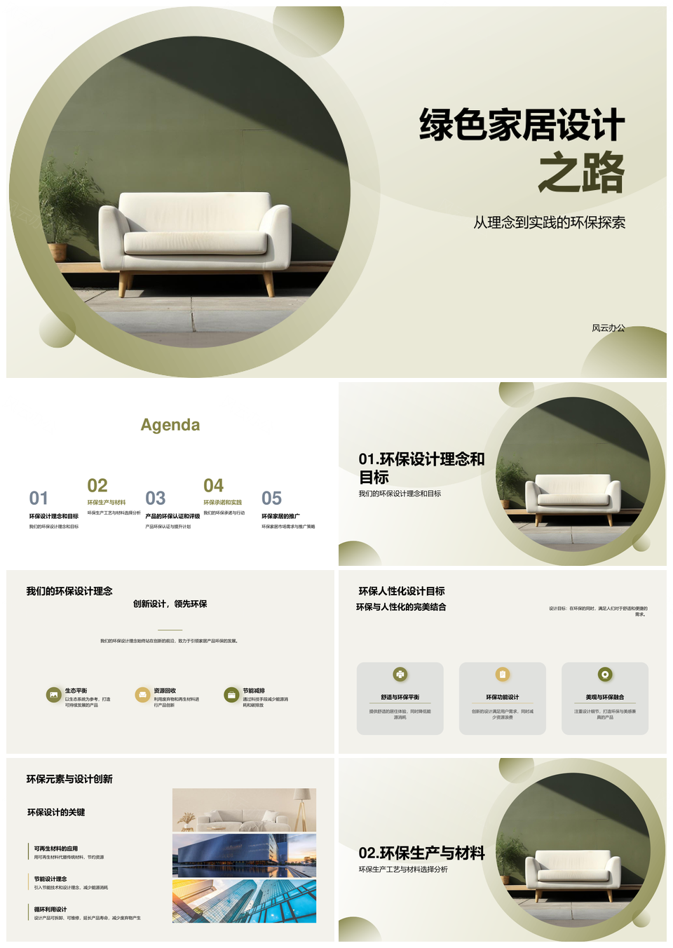 这是一张绿色家居设计创新环保工艺材料认证产线PPT模板,包含绿色家居、设计、创新、环保、工艺、材料、认证、产线等主题内容,也可用作绿色家居设计创新、家居设计创新环保、设计创新环保工艺、创新环保工艺材料、环保工艺材料认证、工艺材料认证产线、绿色家居设计、家居设计创新、设计创新环保、创新环保工艺、环保工艺材料、工艺材料认证、材料认证产线、绿色家居、家居设计等PPT场景使用。 风云办公提供的绿色家居设计创新环保工艺材料认证产线PPT模板,下载格式为pptx,一共23页,作品中文字及图均可以修改和编辑,图片更改请在作品中右键图片并更换,文字修改请直接点击文字进行修改。