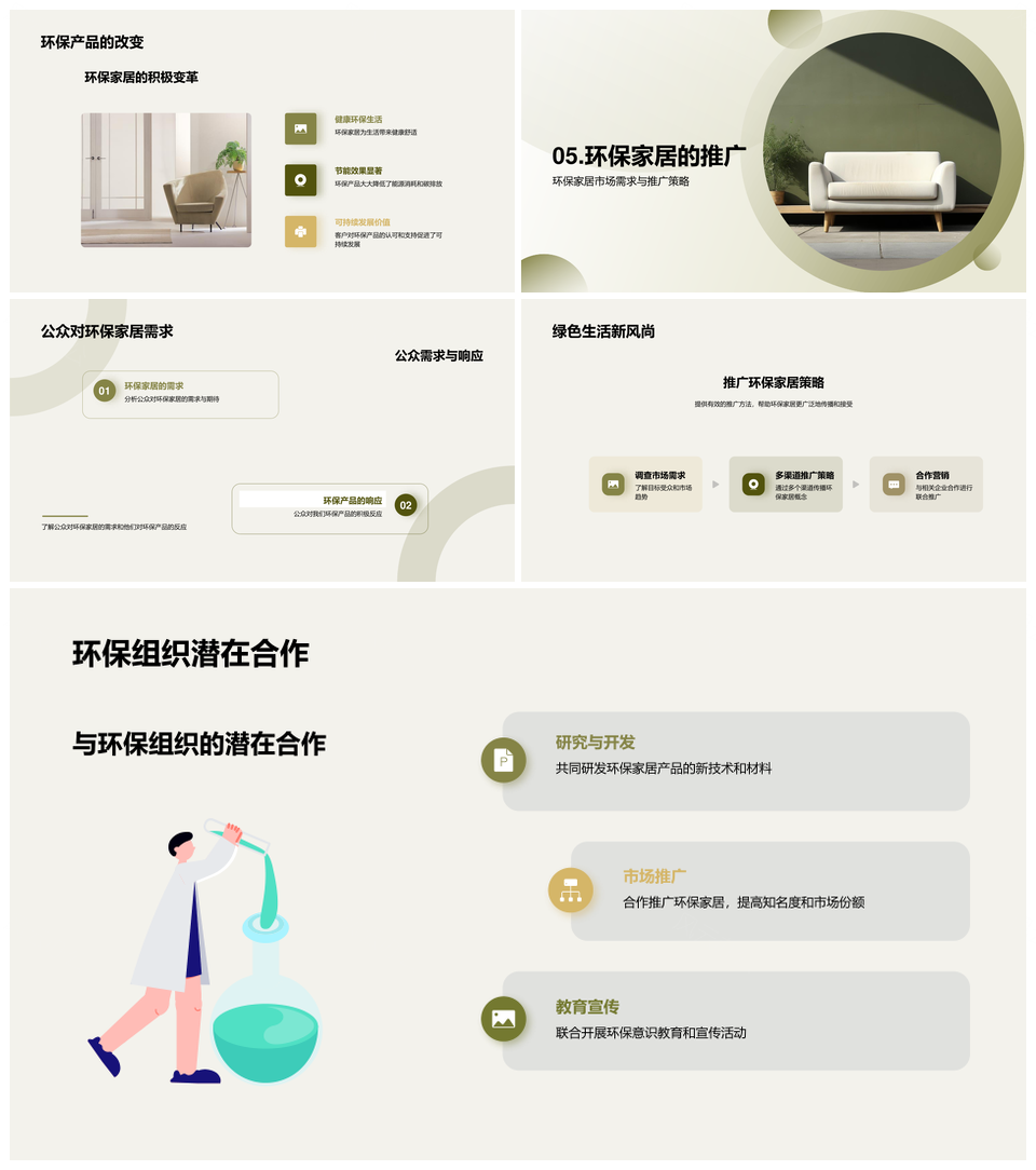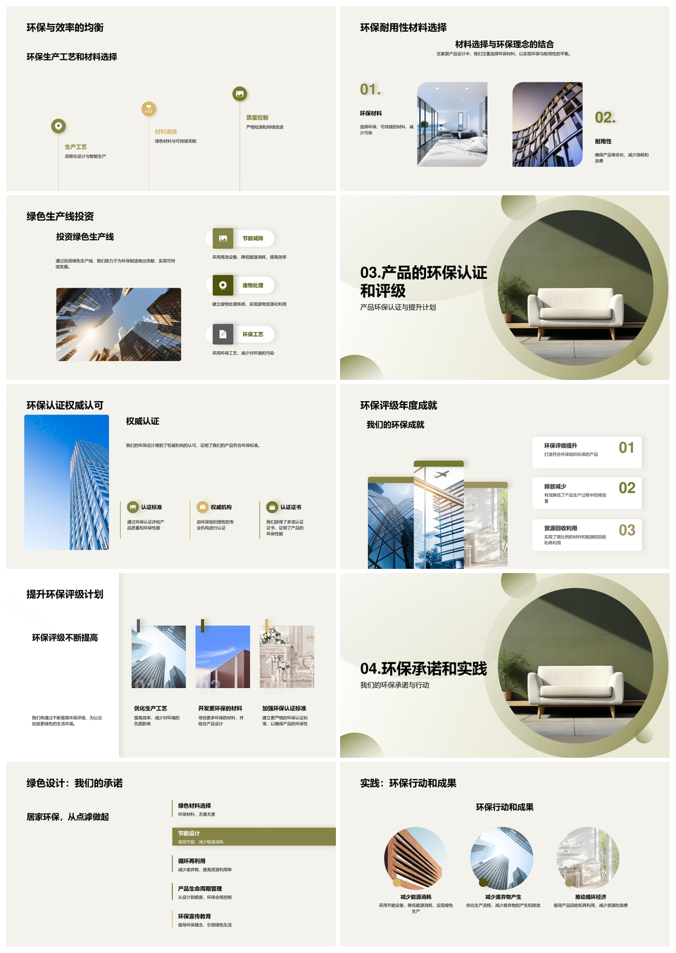 绿色家居设计创新环保工艺材料认证产线PPT模板推荐