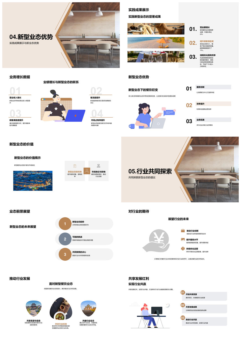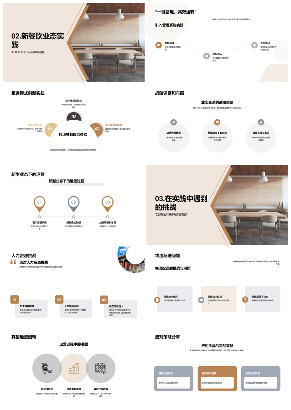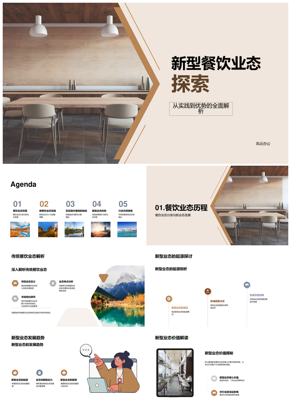 风云办公提供的新型与传统餐饮业态管理服务创新实践PPT模板,下载格式为pptx,一共28页,作品中文字及图均可以修改和编辑,图片更改请在作品中右键图片并更换,文字修改请直接点击文字进行修改。