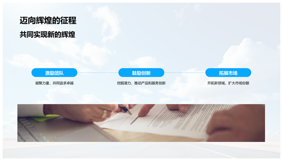 这是一张辉煌之路公司成长创新研发销售业绩未来展望PPT模板,包含辉煌之路、公司、成长、创新、研发、销售、业绩、未来、展望等主题内容,也可用作辉煌之路公司成长创新、公司成长创新研发、成长创新研发销售业绩、创新研发销售业绩未来展望、辉煌之路公司成长、公司成长创新、成长创新研发、创新研发销售业绩、研发销售业绩未来展望、辉煌之路公司、公司成长、成长创新、创新研发、研发销售业绩、销售业绩未来展望等PPT场景使用。 风云办公提供的辉煌之路公司成长创新研发销售业绩未来展望PPT模板,下载格式为pptx,一共29页,作品中文字及图均可以修改和编辑,图片更改请在作品中右键图片并更换,文字修改请直接点击文字进行修改。