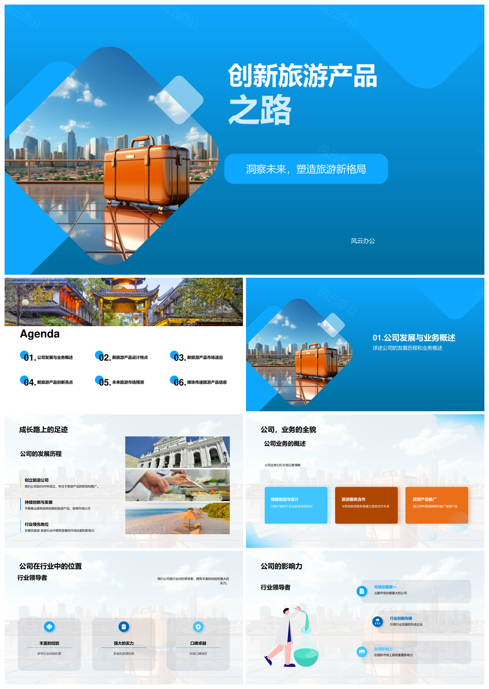 风云办公提供的创新旅游产品未来设计领航市场新需求PPT模板,下载格式为pptx,一共28页,作品中文字及图均可以修改和编辑,图片更改请在作品中右键图片并更换,文字修改请直接点击文字进行修改。