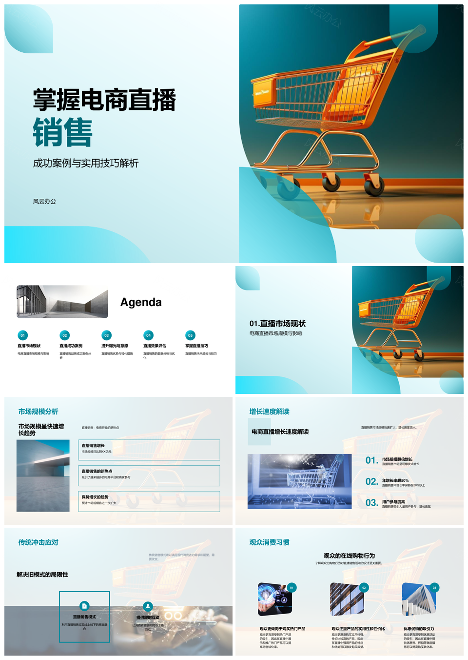 这是一张电商直播市场规模增速冲击传统品牌转型网红案例PPT模板,包含电商直播、市场规模、增速、冲击、传统品牌、转型、网红案例等主题内容,也可用作电商直播市场规模增速、冲击传统品牌转型网红案例、电商直播冲击传统品牌转型、传统品牌转型网红案例、冲击传统品牌转型网红、电商直播市场规模冲击、规模增速冲击传统品牌、传统品牌转型网红案例、市场增速冲击传统品牌、冲击传统品牌转型、电商直播冲击传统品牌、规模增速冲击传统、转型网红案例冲击、电商直播市场规模、冲击传统品牌转型、传统品牌转型网红、市场增速冲击、规模增速冲击、网红案例冲击、电商直播市场、规模增速、冲击传统品牌、传统品牌转型、转型网红、网红案例等PPT场景使用。 风云办公提供的电商直播市场规模增速冲击传统品牌转型网红案例PPT模板,下载格式为pptx,一共33页,作品中文字及图均可以修改和编辑,图片更改请在作品中右键图片并更换,文字修改请直接点击文字进行修改。