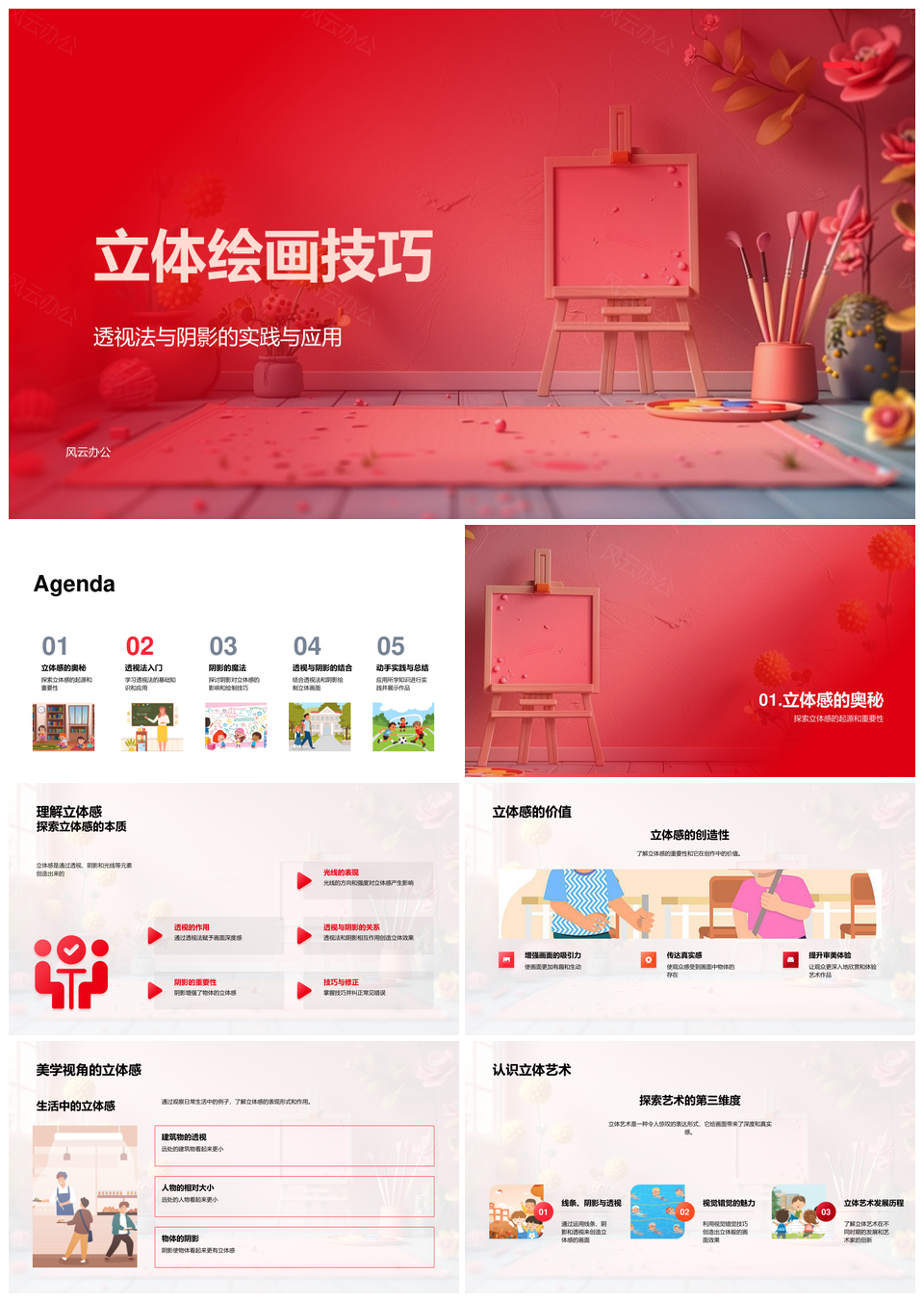 风云办公提供的小学美术立体绘画光影透视技法PPT模板,下载格式为pptx,一共28页,作品中文字及图均可以修改和编辑,图片更改请在作品中右键图片并更换,文字修改请直接点击文字进行修改。