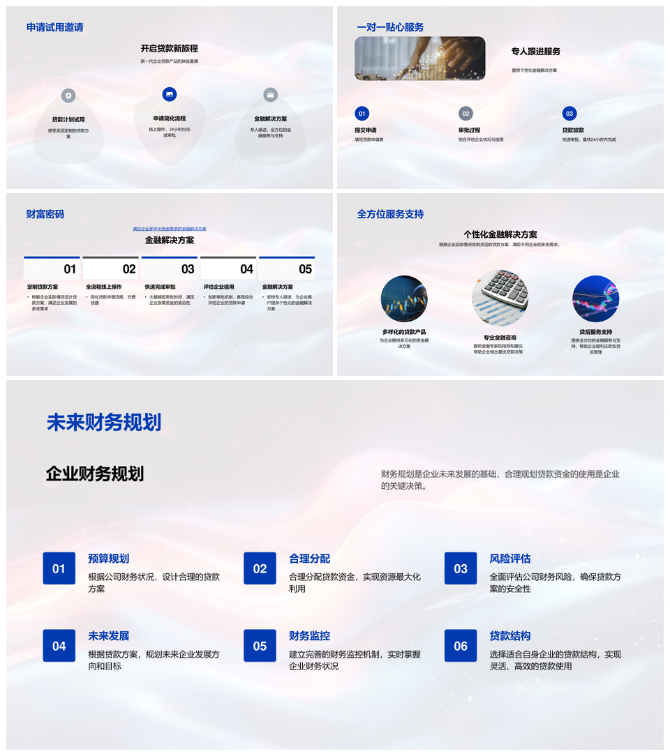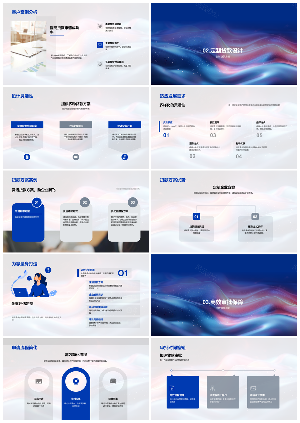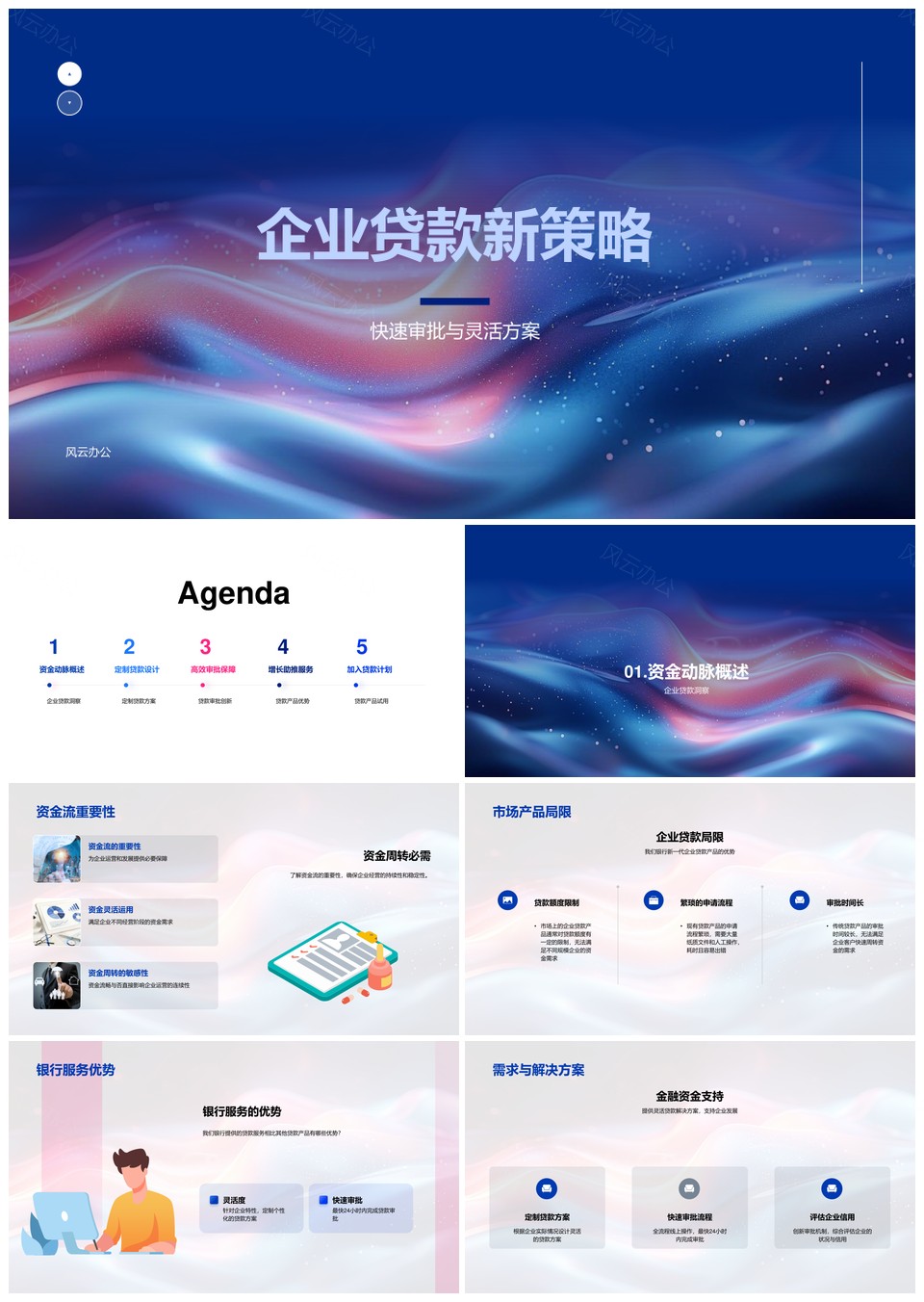 这是一张企业贷款快速审批灵活方案助力资金周转PPT模板,包含企业贷款、快速审批、灵活方案、助力、资金周转等主题内容,也可用作企业贷款快速审批灵活方案助力资金周转、企业贷款快速审批灵活方案助力、快速审批灵活方案助力资金周转、企业贷款快速审批灵活方案、企业贷款快速审批助力资金周转、快速审批灵活方案助力、企业贷款灵活方案助力资金周转、灵活方案助力资金周转、企业贷款快速审批、快速审批灵活方案、灵活方案助力、助力资金周转、企业贷款资金周转、快速审批资金周转、企业贷款灵活方案等PPT场景使用。 风云办公提供的企业贷款快速审批灵活方案助力资金周转PPT模板,下载格式为pptx,一共33页,作品中文字及图均可以修改和编辑,图片更改请在作品中右键图片并更换,文字修改请直接点击文字进行修改。