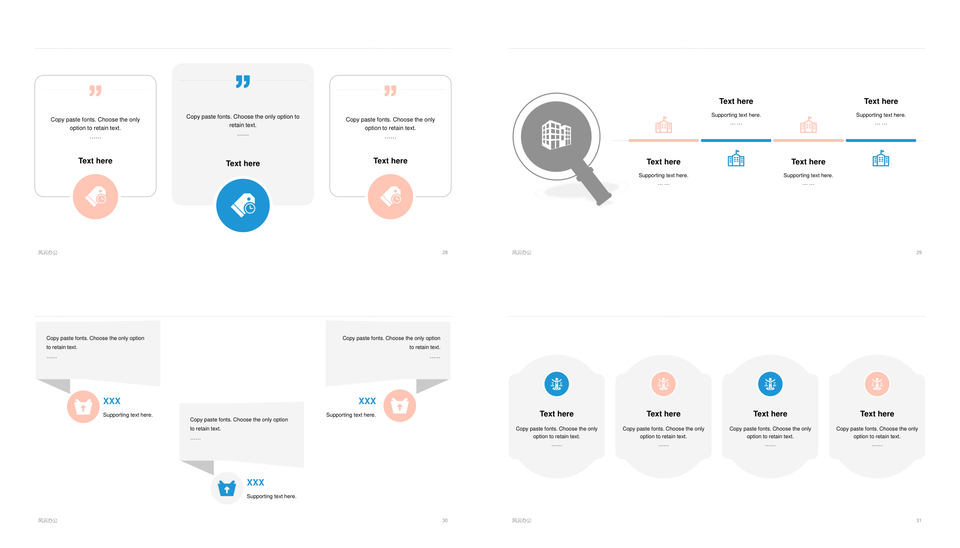 这款扁平化插画风PPT模板专为职场场景设计,以浅蓝与天蓝为主色调,搭配低饱和度辅助色系,营造清爽而不失专业感的视觉层次。模块化结构支持快速调整内容顺序,可适配策划提案、数据汇报、项目复盘等多种场景,逻辑框架清晰,页面备注标注了详细编辑指引。内嵌15种矢量图表组件,含柱状图、流程图等可交互素材,搭配40余页插图页,涵盖办公场景、团队协作等主题插画。所有元素均可拆分修改,配色方案已预设为全局主题色,拖拽调整版式不影响元素比例,便于高效迭代内容。