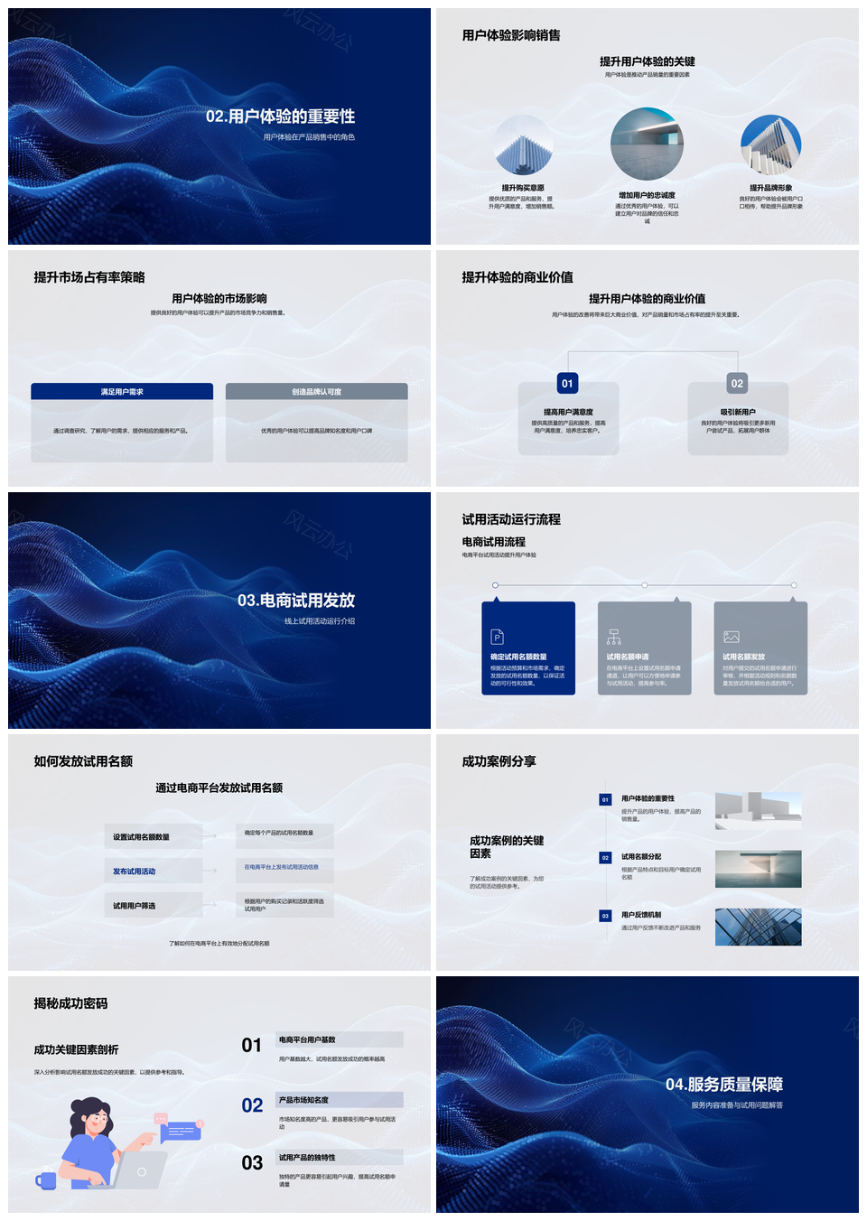 这是一张科技产品试用用户体验电商营销策略占市场份额PPT模板,包含科技产品、试用、用户、体验、电商、营销策略、市场份额等主题内容,也可用作科技产品试用用户体验电商、科技产品用户体验电商营销策略、用户体验电商营销策略占市场、试用用户体验电商营销策略、科技产品电商营销策略占市场、用户体验营销策略占市场份额、科技产品试用用户体验、试用电商营销策略占市场、用户体验电商营销策略、科技产品营销策略占市场、电商营销策略市场份额、科技产品用户体验电商、用户体验电商营销、试用用户体验电商、电商营销策略市场等PPT场景使用。 风云办公提供的科技产品试用用户体验电商营销策略占市场份额PPT模板,下载格式为pptx,一共26页,作品中文字及图均可以修改和编辑,图片更改请在作品中右键图片并更换,文字修改请直接点击文字进行修改。
