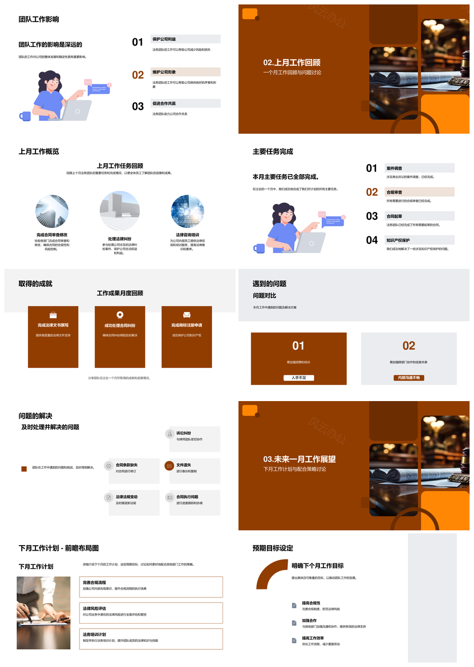 风云办公提供的法务团队月度工作回顾与策略规划PPT模板,下载格式为pptx,一共33页,作品中文字及图均可以修改和编辑,图片更改请在作品中右键图片并更换,文字修改请直接点击文字进行修改。