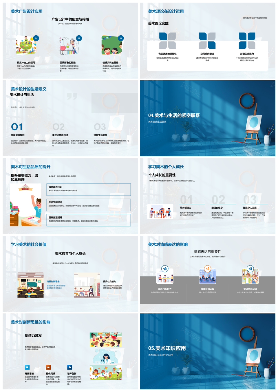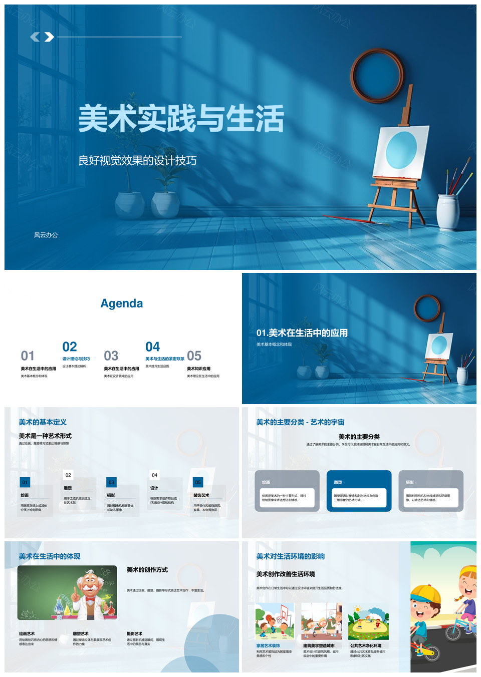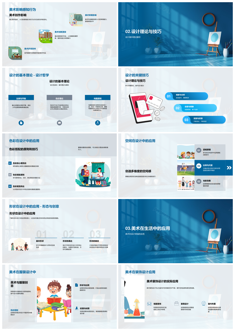 美术设计技巧提升生活品质视觉色彩空间PPT模板推荐