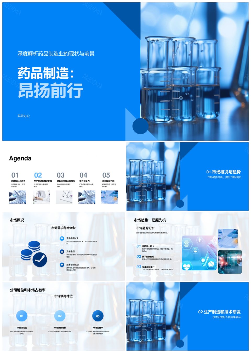 风云办公提供的化学药品制剂制造成果与市场趋势分析PPT模板,下载格式为pptx,一共24页,作品中文字及图均可以修改和编辑,图片更改请在作品中右键图片并更换,文字修改请直接点击文字进行修改。
