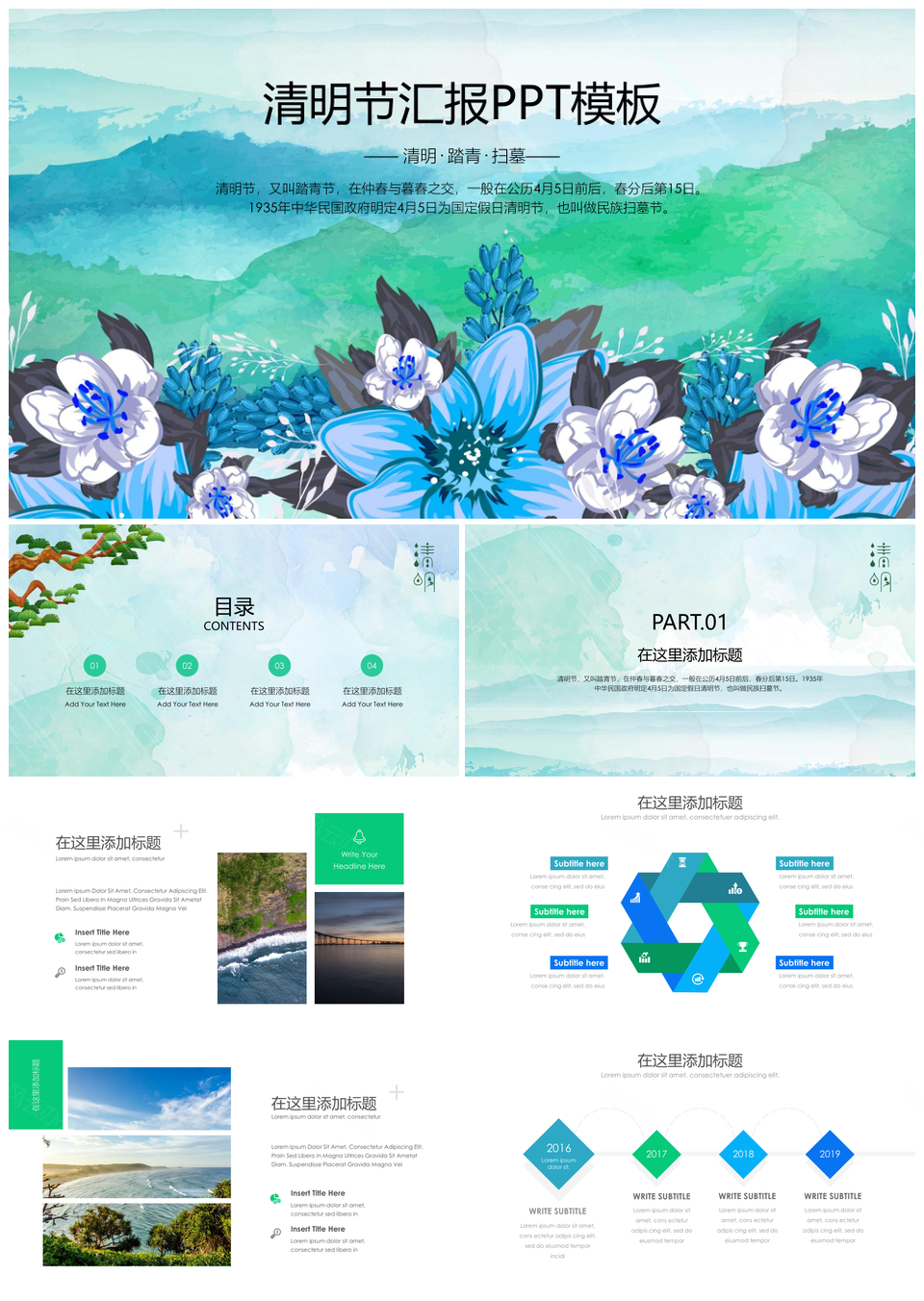 风云办公提供的绿色清明节汇报总结小清新PPT模板,下载格式为pptx,一共20页,作品中文字及图均可以修改和编辑,图片更改请在作品中右键图片并更换,文字修改请直接点击文字进行修改。