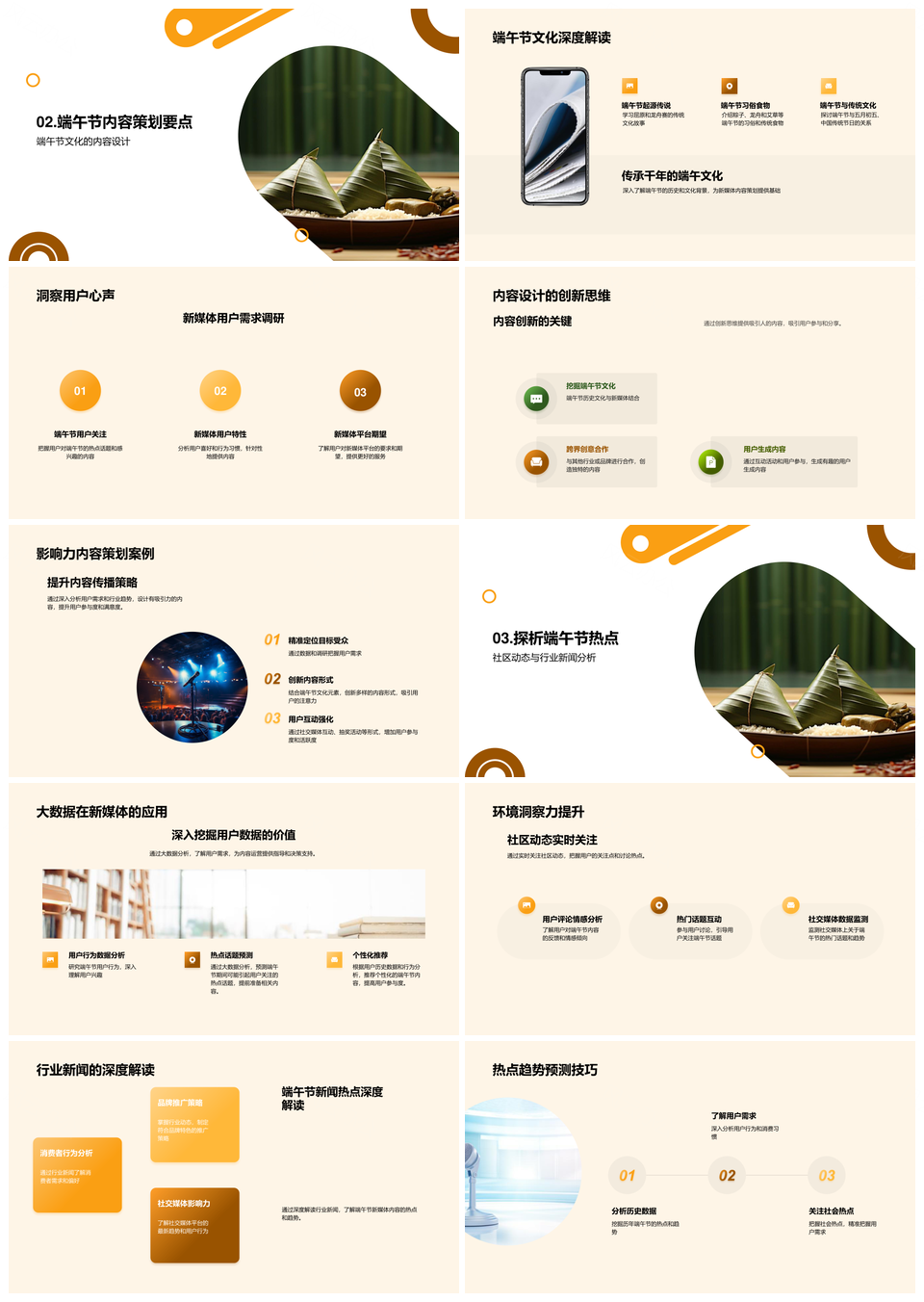 这是一张端午新媒体策略大数据解析龙舟用户需求PPT模板,包含端午、新媒体策略、大数据、解析、龙舟、用户、需求等主题内容,也可用作端午新媒体策略大数据、新媒体策略大数据解析、大数据解析龙舟用户、解析龙舟用户需求、端午龙舟用户需求、新媒体策略解析、大数据解析用户需求、策略大数据解析、端午新媒体策略、端午龙舟用户、龙舟用户需求、新媒体策略大数据、策略解析龙舟、端午用户需求、大数据龙舟用户等PPT场景使用。 风云办公提供的端午新媒体策略大数据解析龙舟用户需求PPT模板,下载格式为pptx,一共28页,作品中文字及图均可以修改和编辑,图片更改请在作品中右键图片并更换,文字修改请直接点击文字进行修改。