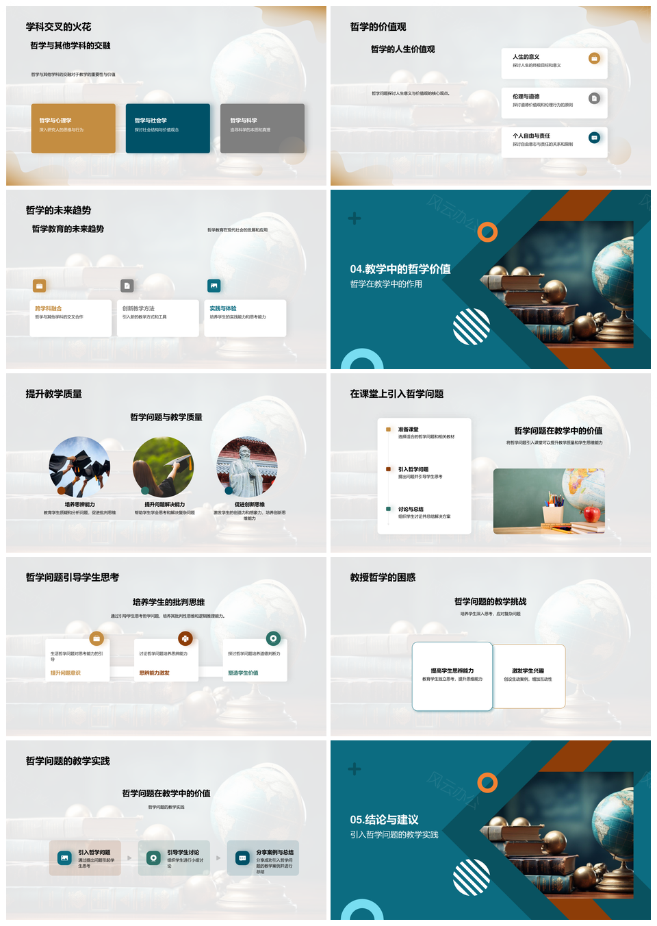 跨学科哲学教育提升思维与价值观全局观PPT模板推荐