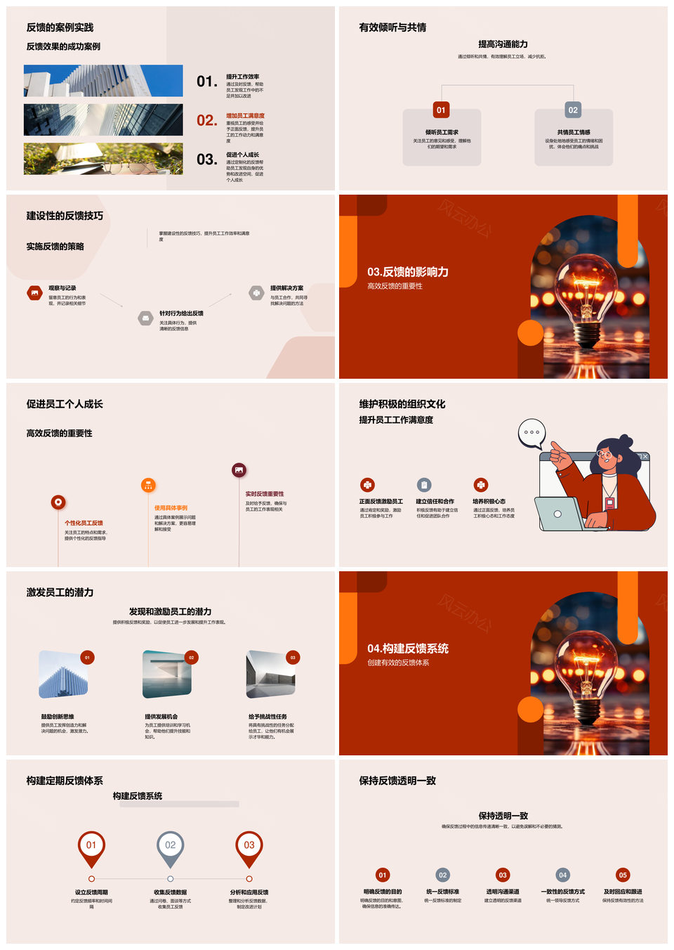 这是一张精准反馈系统激发员工潜力PPT模板,包含精准反馈系统、激发、员工潜力等主题内容,也可用作精准反馈系统激发、反馈系统激发员工、系统激发员工潜力、精准反馈系统、反馈系统激发、系统激发员工、激发员工潜力、精准反馈、反馈系统、系统激发、激发员工、员工潜力、反馈激发、系统员工、激发潜力等PPT场景使用。 风云办公提供的精准反馈系统激发员工潜力PPT模板,下载格式为pptx,一共23页,作品中文字及图均可以修改和编辑,图片更改请在作品中右键图片并更换,文字修改请直接点击文字进行修改。