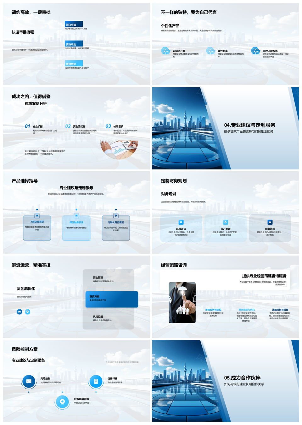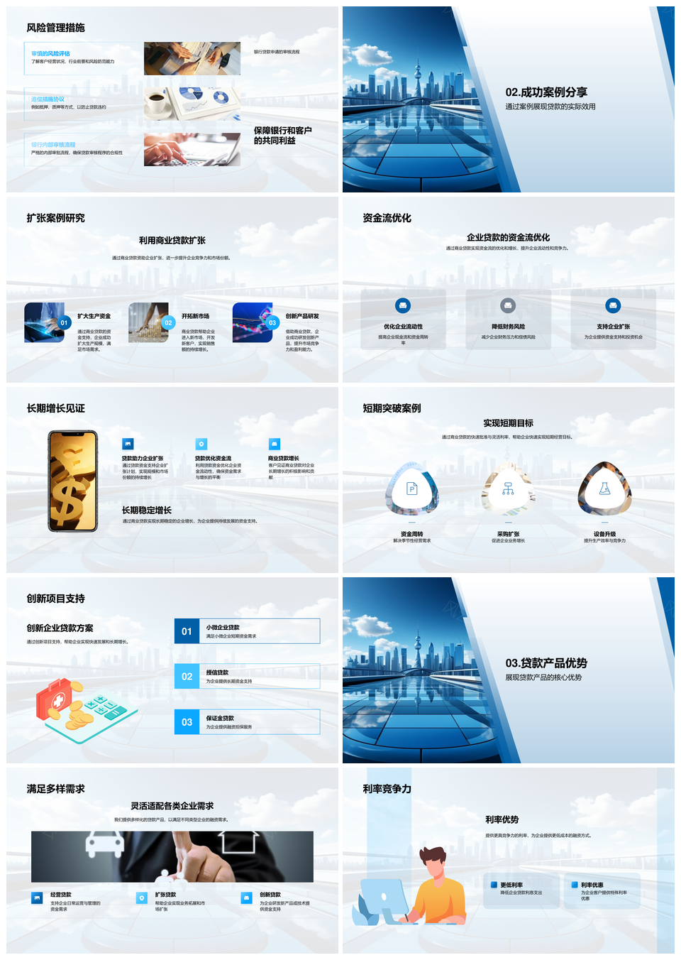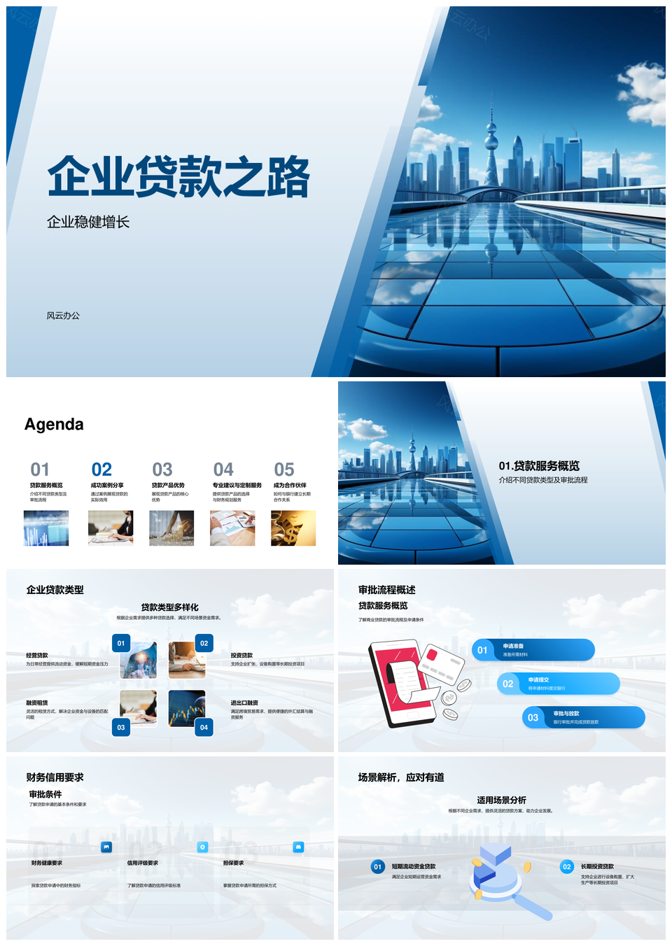 这是一张企业贷款审批风控资金优化扩张案例研究PPT模板,包含企业、贷款、审批、风控、资金、优化、扩张、案例、研究等主题内容,也可用作企业贷款审批风控、贷款审批风控资金、风控资金优化扩张、资金优化扩张案例、优化扩张案例研究、企业贷款审批、贷款审批风控、审批风控资金、风控资金优化、资金优化扩张、优化扩张案例、扩张案例研究、企业贷款、贷款审批、审批风控等PPT场景使用。 风云办公提供的企业贷款审批风控资金优化扩张案例研究PPT模板,下载格式为pptx,一共33页,作品中文字及图均可以修改和编辑,图片更改请在作品中右键图片并更换,文字修改请直接点击文字进行修改。