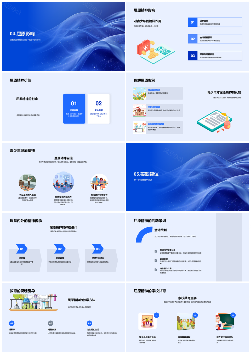 这款模板以深蓝主色调呈现科技质感,融入波粒二象性设计灵感,将抽象波形与粒子光点巧妙融合,展现量子力学的视觉张力。动态波浪曲线贯穿版面,结合激光光束切割式排版,实现信息层级的精准划分。模块化布局通过留白与渐变创造呼吸感,科研数据及技术方案可通过智能图表可视化呈现。全模板使用无衬线字族确保阅读效率,适配学术汇报、产品发布会等专业场景。