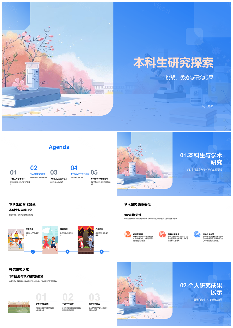 风云办公提供的本科生学术研究挑战与创新方法探索PPT模板,下载格式为pptx,一共23页,作品中文字及图均可以修改和编辑,图片更改请在作品中右键图片并更换,文字修改请直接点击文字进行修改。
