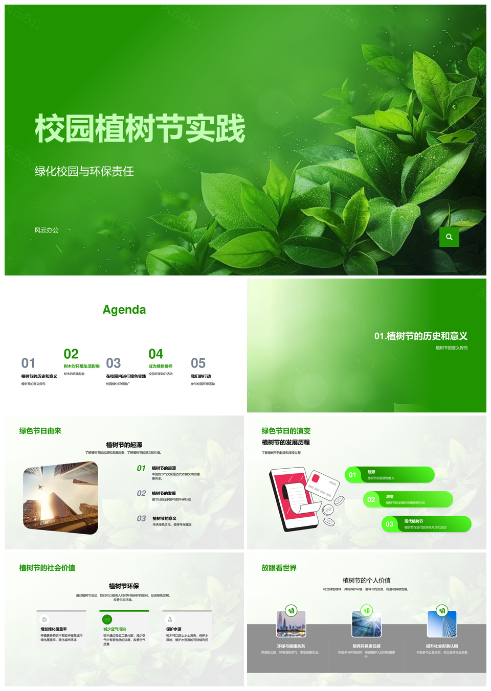 风云办公提供的校园植树节环保绿化实践与生态知识PPT模板,下载格式为pptx,一共33页,作品中文字及图均可以修改和编辑,图片更改请在作品中右键图片并更换,文字修改请直接点击文字进行修改。