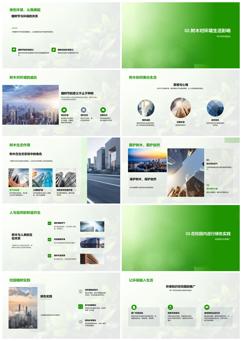 这是一张校园植树节环保绿化实践与生态知识PPT模板,包含校园、植树节、环保、绿化、实践、生态、知识等主题内容,也可用作校园植树节环保绿化、环保绿化实践生态知识、校园环保绿化实践、植树节环保绿化实践、校园植树节实践环保、环保绿化生态知识、校园实践生态知识、植树节环保绿化、校园环保绿化、绿化实践生态、校园植树节、环保绿化实践、实践生态知识、生态知识环保、校园实践环保等PPT场景使用。
