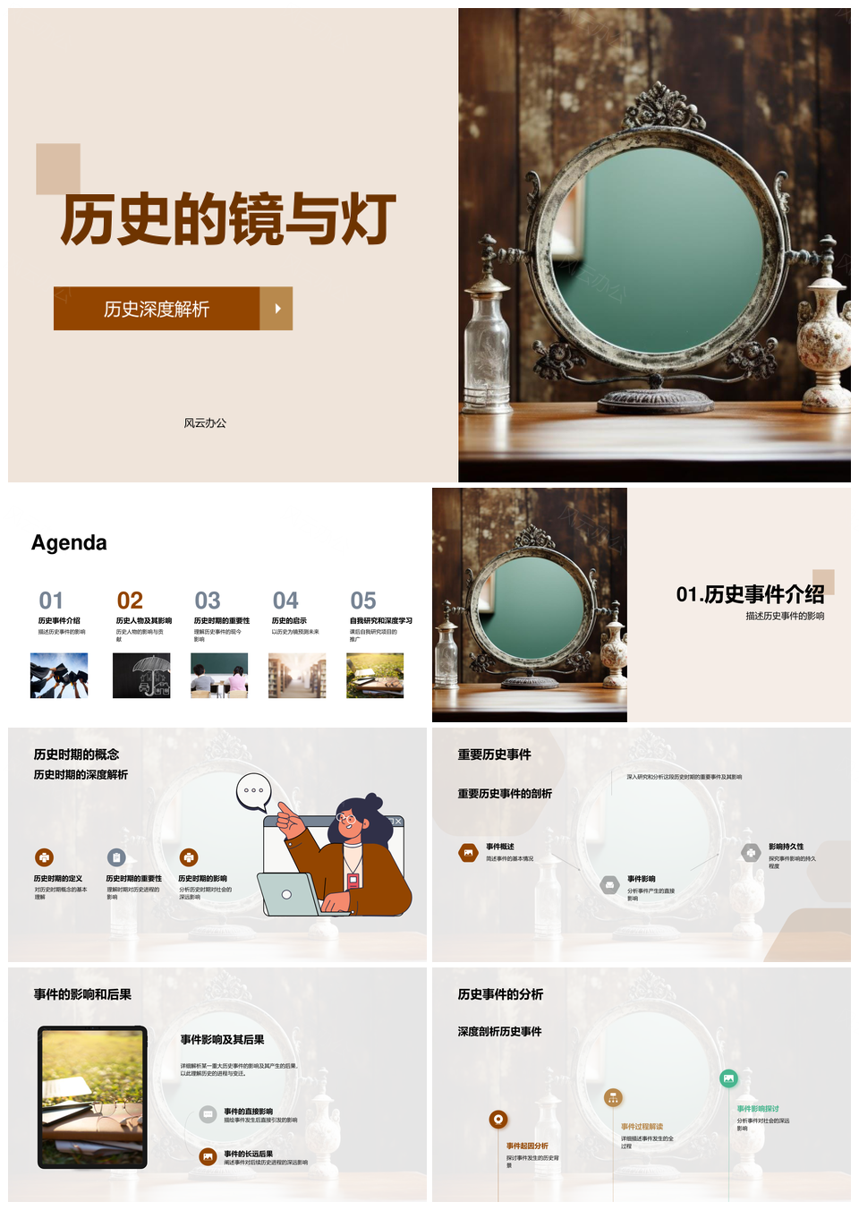 风云办公提供的历史镜灯深鉴人事时策影响决策PPT模板,下载格式为pptx,一共33页,作品中文字及图均可以修改和编辑,图片更改请在作品中右键图片并更换,文字修改请直接点击文字进行修改。