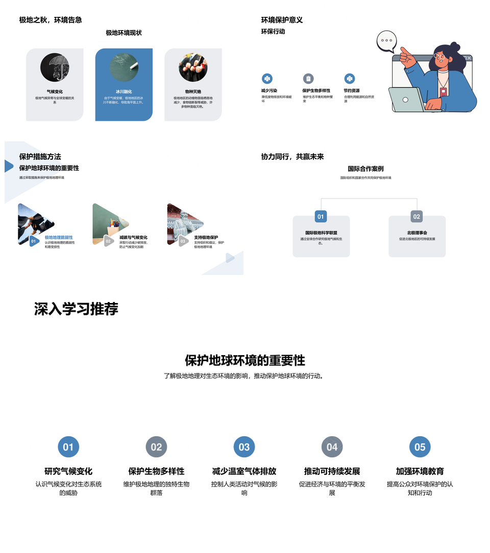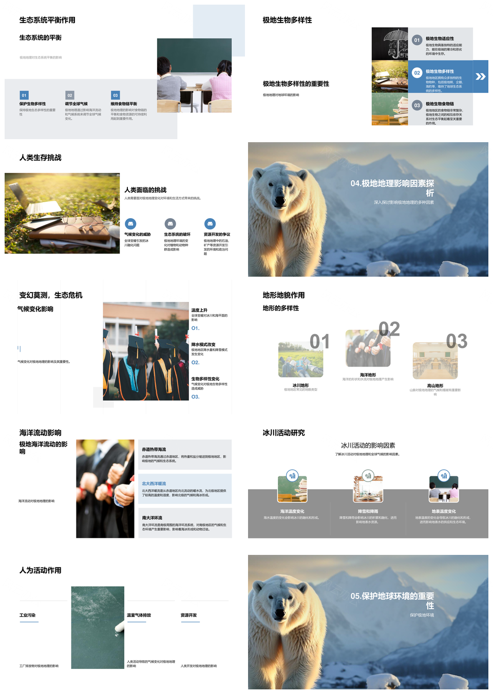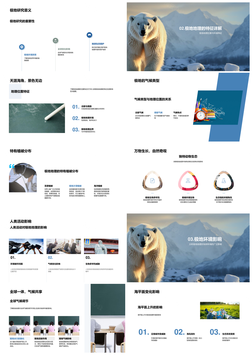风云办公提供的极地地理环境生态气候保护研究PPT模板,下载格式为pptx,一共33页,作品中文字及图均可以修改和编辑,图片更改请在作品中右键图片并更换,文字修改请直接点击文字进行修改。