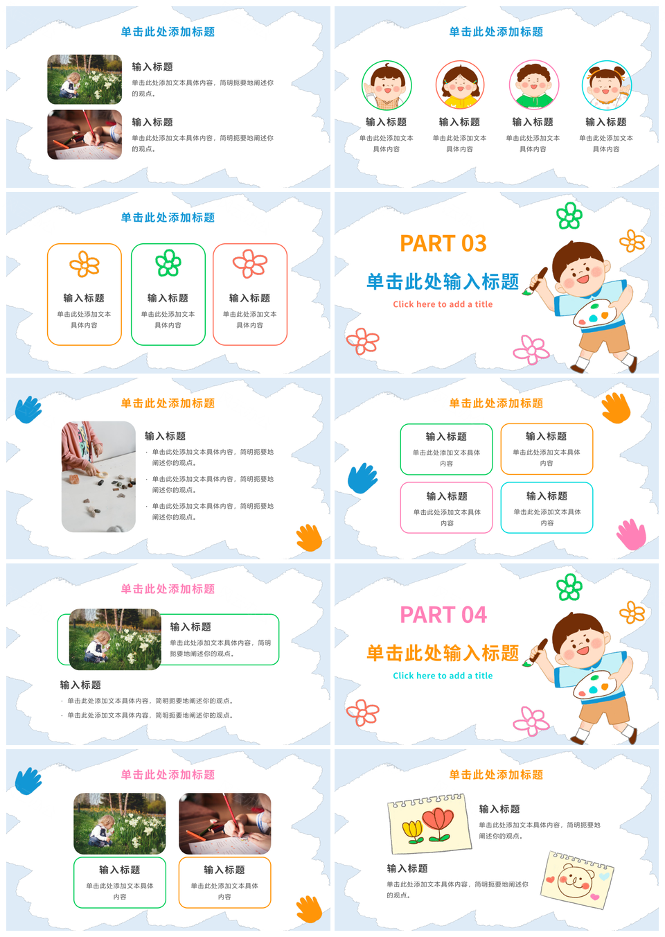 清新卡通渐变几何创意手绘儿童家长会教育PPT模板