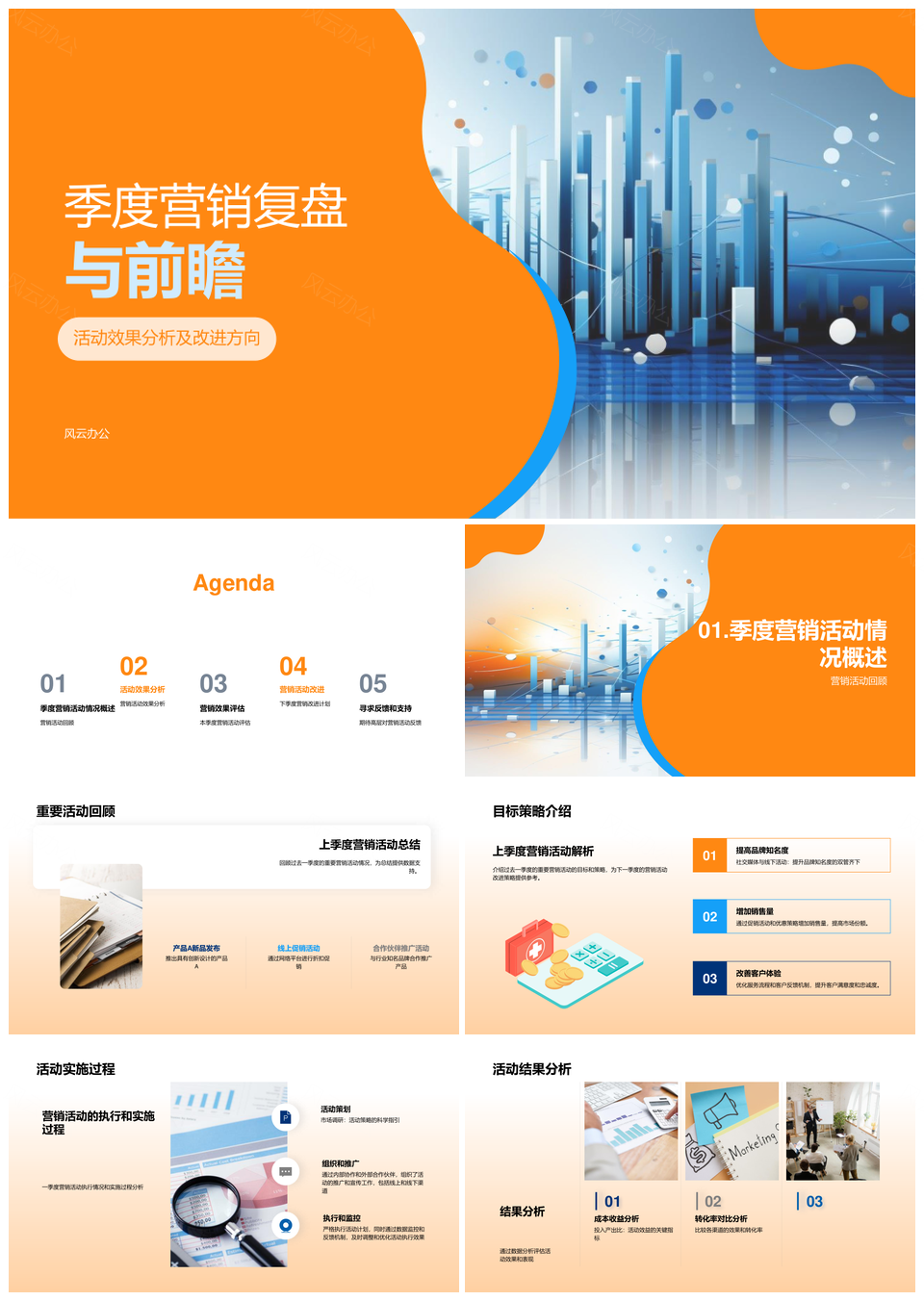 风云办公提供的季度营销活动复盘效果分析及策略展望PPT模板,下载格式为pptx,一共25页,作品中文字及图均可以修改和编辑,图片更改请在作品中右键图片并更换,文字修改请直接点击文字进行修改。