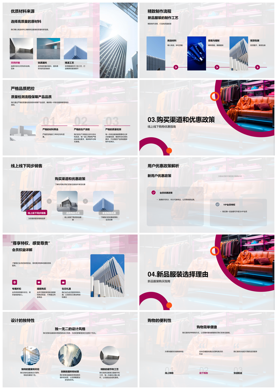 这是一张新品服饰设计舒适时尚精工优质品质生活之选PPT模板,包含新品、服饰、设计、舒适、时尚、精工、优质、品质、生活、之选等主题内容,也可用作新品服饰设计舒适、服饰设计舒适时尚、设计舒适时尚精工、舒适时尚精工优质、时尚精工优质品质、精工优质品质生活、优质品质生活之选、新品服饰设计、服饰设计舒适、设计舒适时尚、舒适时尚精工、时尚精工优质、精工优质品质、优质品质生活、品质生活之选等PPT场景使用。 风云办公提供的新品服饰设计舒适时尚精工优质品质生活之选PPT模板,下载格式为pptx,一共23页,作品中文字及图均可以修改和编辑,图片更改请在作品中右键图片并更换,文字修改请直接点击文字进行修改。
