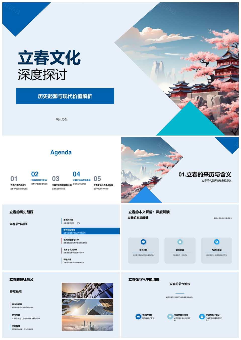 立春二十四节气历史农俗文化探源PPT模板推荐