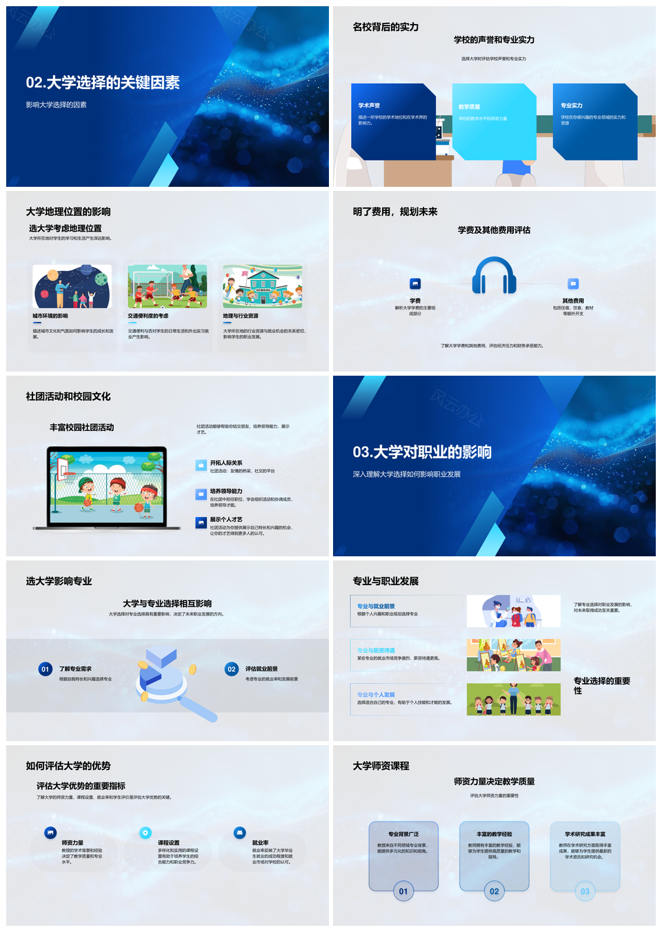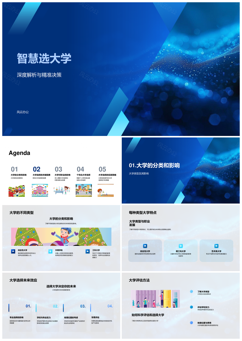 风云办公提供的大学择校职业规划专业声誉综合评估PPT模板,下载格式为pptx,一共28页,作品中文字及图均可以修改和编辑,图片更改请在作品中右键图片并更换,文字修改请直接点击文字进行修改。