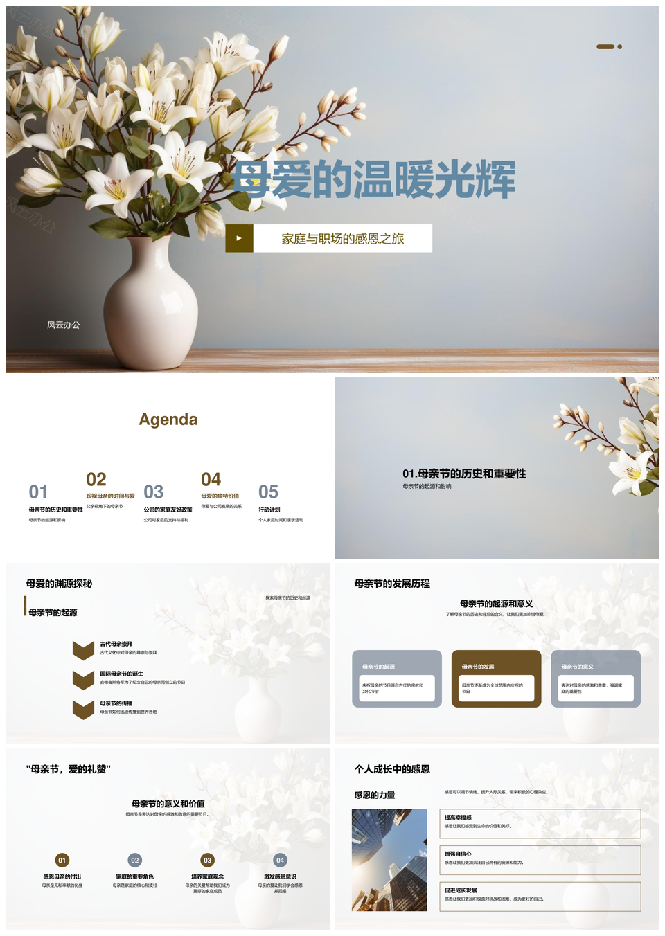 母亲节母爱光辉职场家庭感恩温暖PPT模板