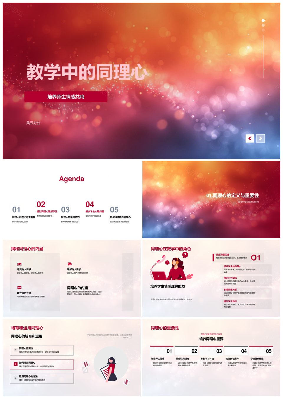 风云办公提供的教师培养同理心促进学生情感心理理解PPT模板,下载格式为pptx,一共33页,作品中文字及图均可以修改和编辑,图片更改请在作品中右键图片并更换,文字修改请直接点击文字进行修改。