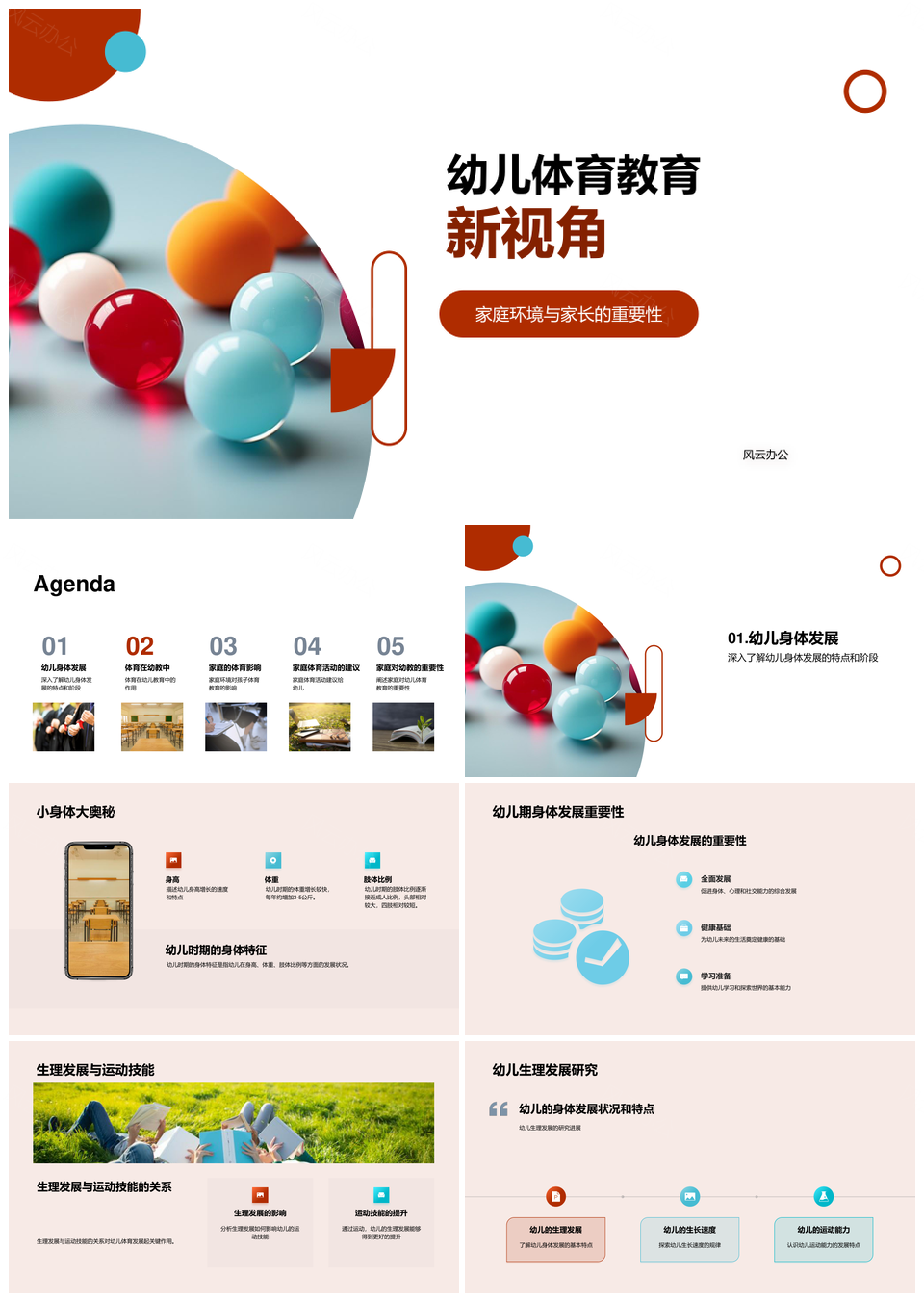 风云办公提供的家庭幼儿体育教育助力体技能社交发展PPT模板,下载格式为pptx,一共33页,作品中文字及图均可以修改和编辑,图片更改请在作品中右键图片并更换,文字修改请直接点击文字进行修改。