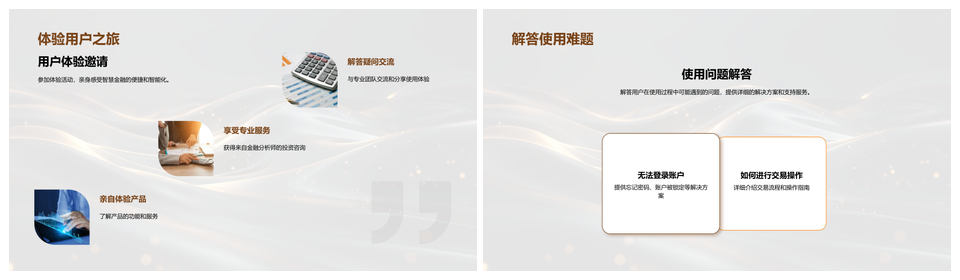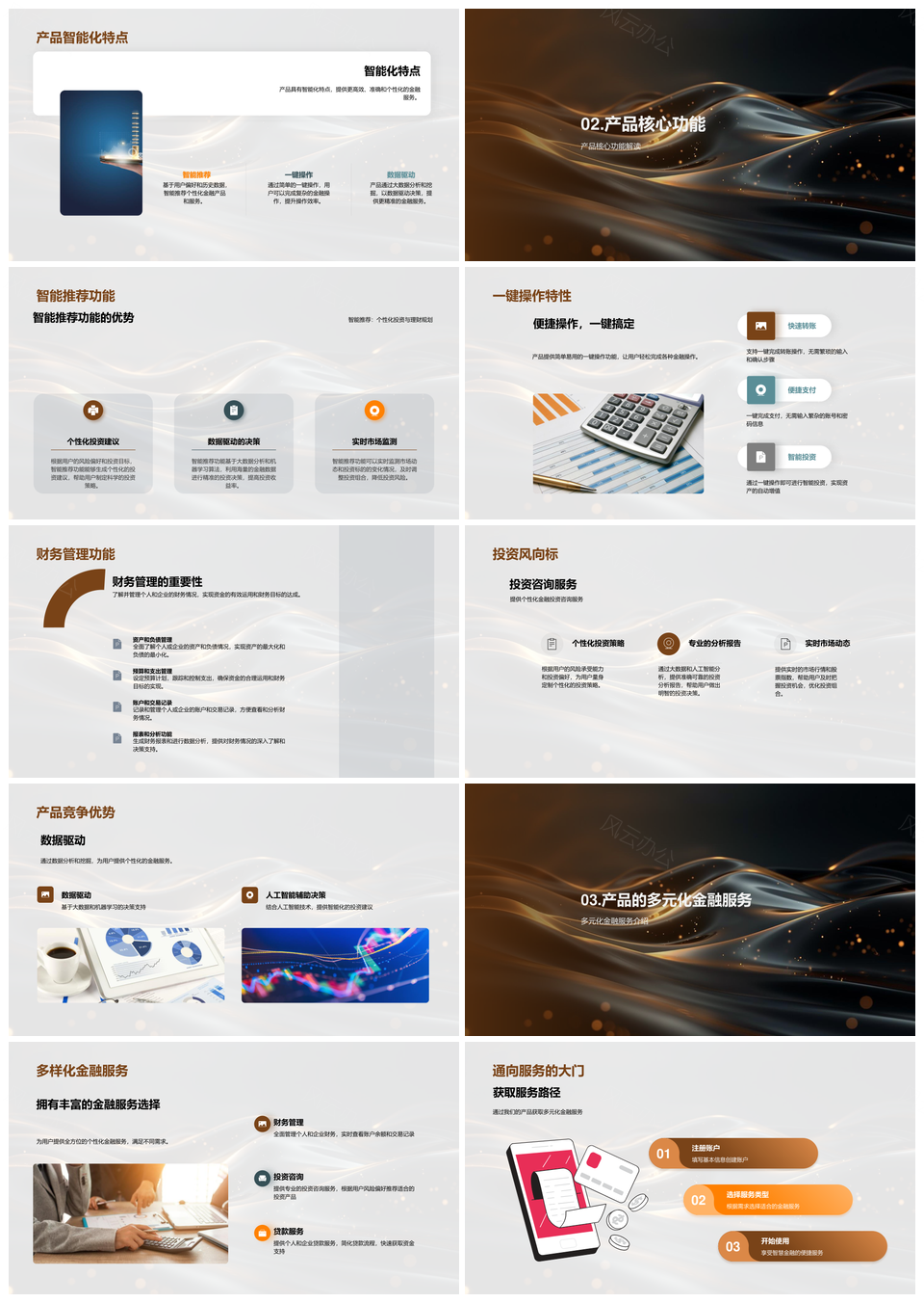这是一张金融科技数据驱动智能推荐金融产品一键财管投咨PPT模板,包含金融科技、数据驱动、智能推荐、金融产品、一键、财管投咨等主题内容,也可用作金融科技数据驱动智能推荐金融产品、数据驱动智能推荐金融产品一键财管、智能推荐金融产品一键财管投咨、金融科技数据驱动智能推荐、数据驱动智能推荐金融产品、智能推荐金融产品一键财管、金融产品一键财管投咨、金融科技数据驱动、数据驱动智能推荐、智能推荐金融产品、金融产品一键财管、一键财管投咨、金融科技智能推荐、金融科技金融产品、数据驱动金融产品等PPT场景使用。 风云办公提供的金融科技数据驱动智能推荐金融产品一键财管投咨PPT模板,下载格式为pptx,一共30页,作品中文字及图均可以修改和编辑,图片更改请在作品中右键图片并更换,文字修改请直接点击文字进行修改。